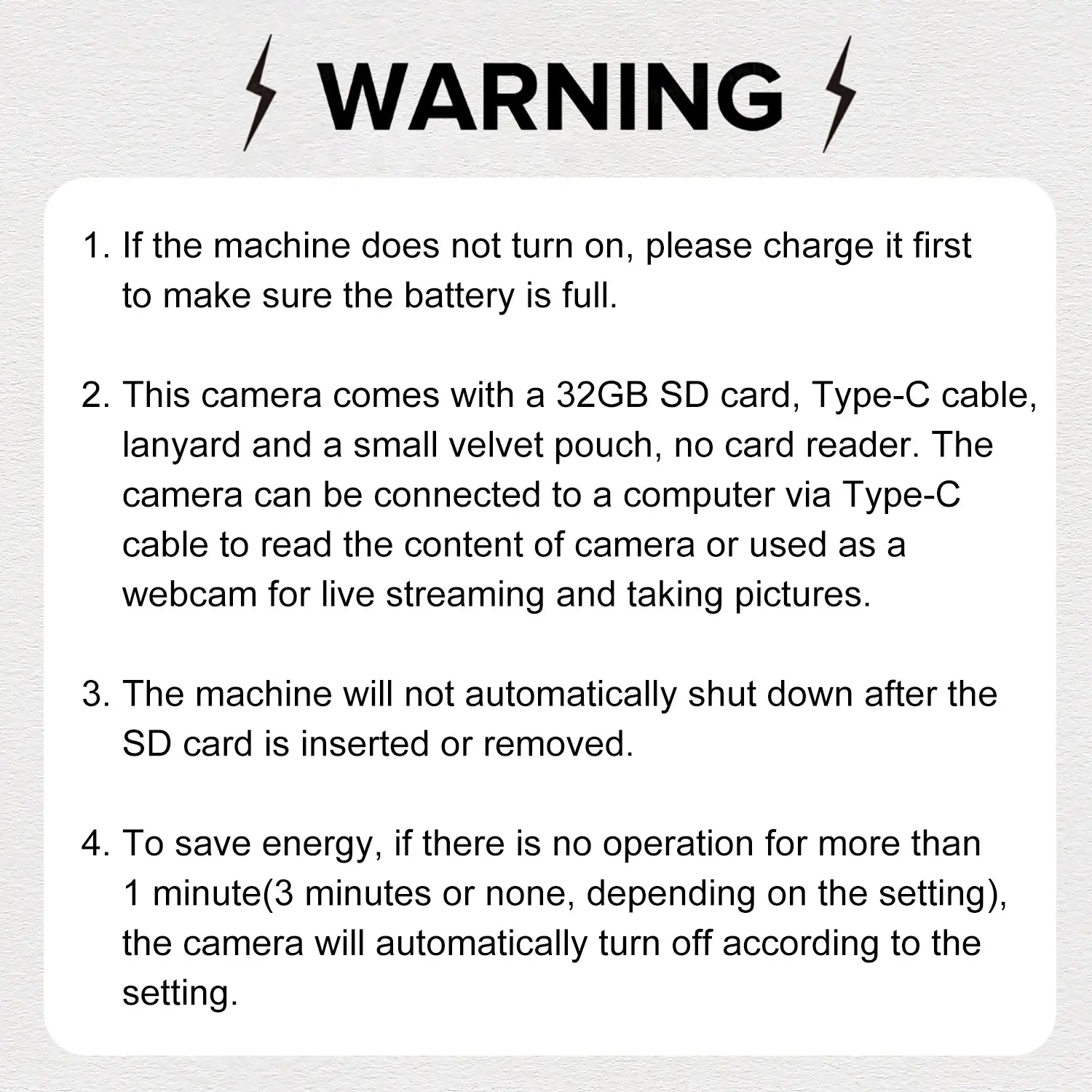 Specification:Camera + Memory Card