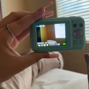 absolutely LOVE LOVE LOVEEEEE this camera 😫 cannot wait to take pics of me n my frens when we outside ! love the y2k look/quality , good price definitely recommend. Comes w a little bag for it , screen cleaner , a charger , and a band tou can attach to hold it.