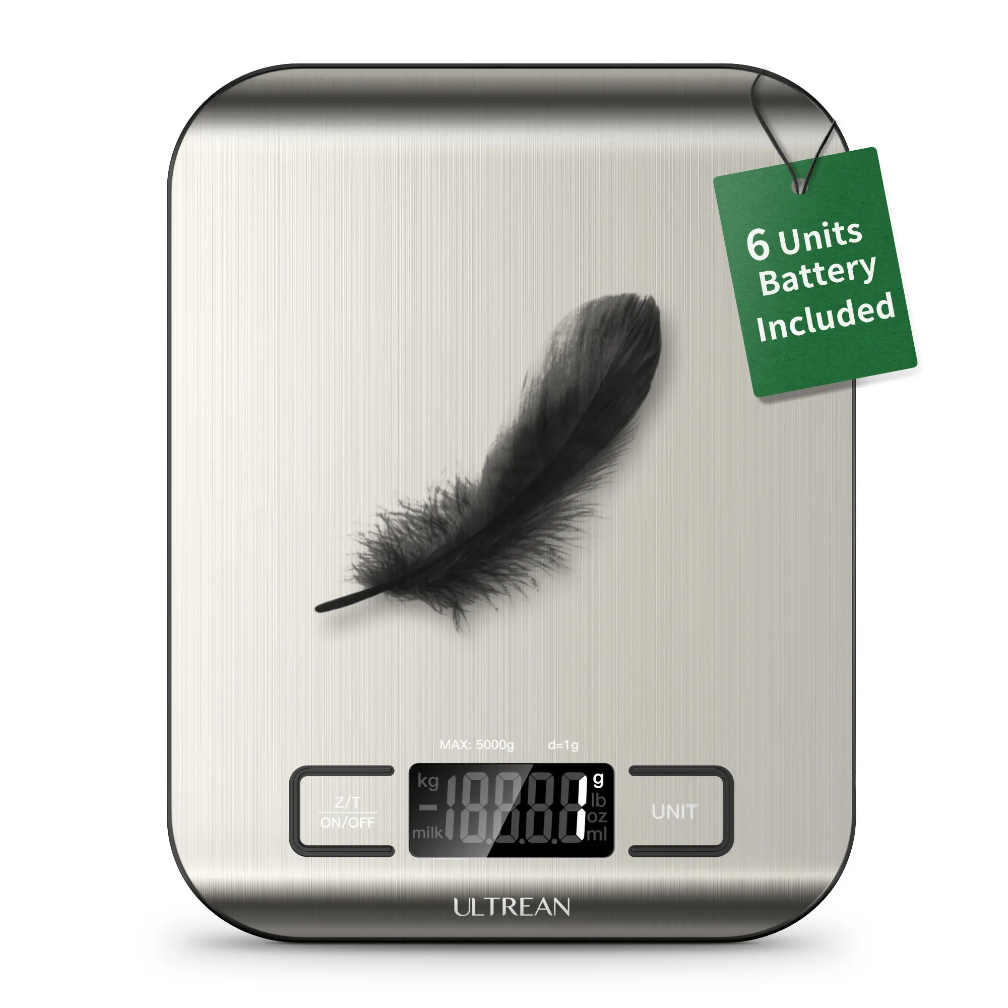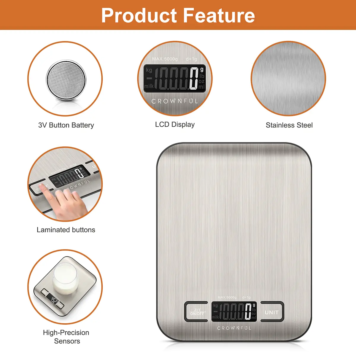 Elevate your cooking and baking with the Digital Food Scale! This 11 lb scale features a high-precision sensor for accurate measurements. It includes a tare function and an LCD display for easy reading. With 6-unit conversion, it's perfect for both ounces and grams. The auto-off feature ensures safety after 2 minutes. Stay informed with overload and low battery indicators. Weigh items from 1g to 5000g with a division value of 1g.