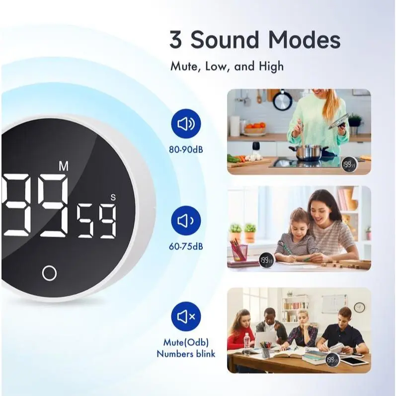 Replaces cluttered analog timers with 6 essential functions:✅ Kitchen timer (roasting, boiling eggs, yogurt fermentation)✅ Sous vide & canning timer (precision for DIY preserves or low-and-slow cooking)✅ Meal prep timer (stay on track with batch cooking)✅ Workout timer (HIIT, reps, or rest periods)✅ Tea/coffee timer (perfect steeping every time)✅ Silent alarm clock (for quiet spaces)