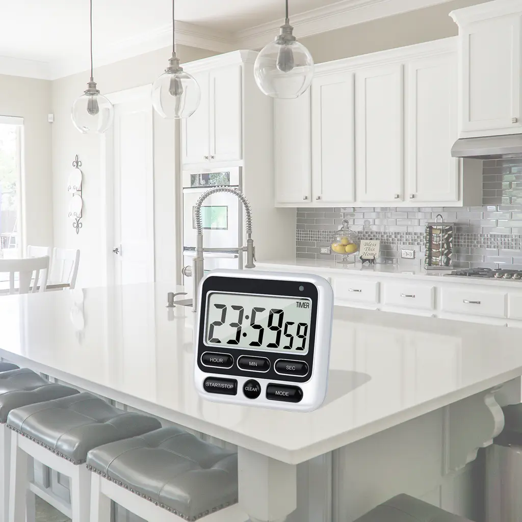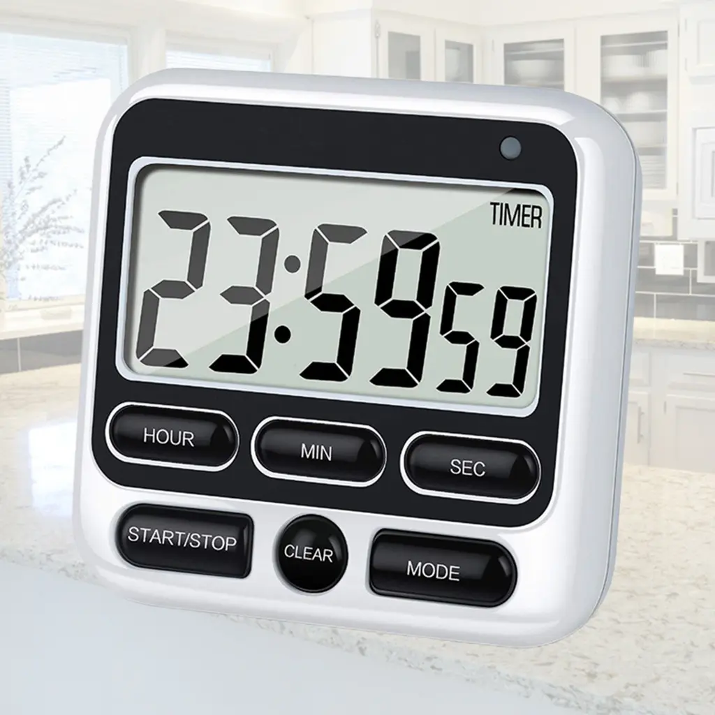 This electronic digital screen timer is equipped with large screen, clear, bold numbers for easy reading.