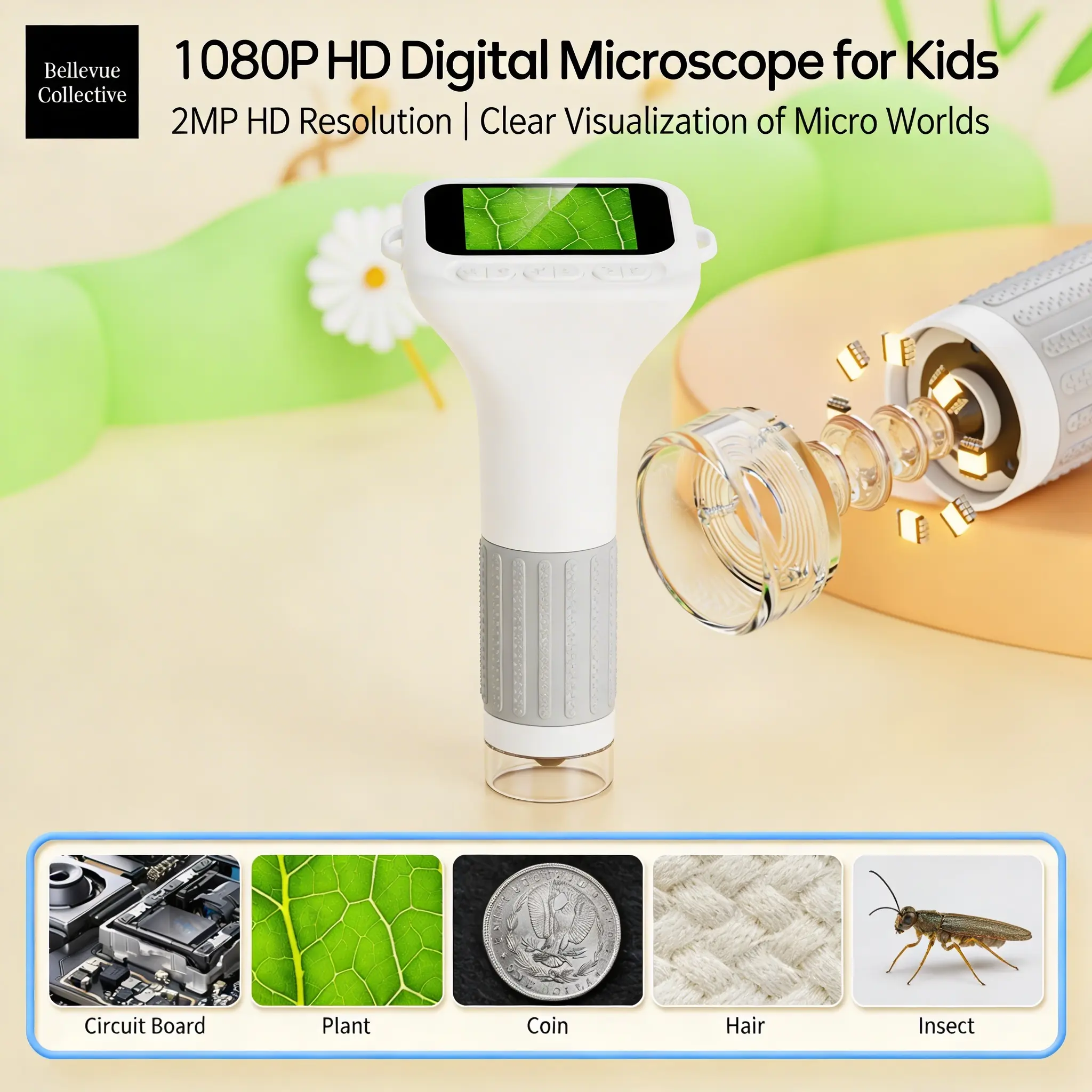 Make science feel real for kids with a portable digital microscope toy that features a built-in screen for comfortable, easy viewing. Designed to support early STEM learning and skill development, it helps children explore the tiny details of everyday objects—textures, plants, fabrics, paper fibers, and more—turning “What is that?” moments into hands-on discovery.