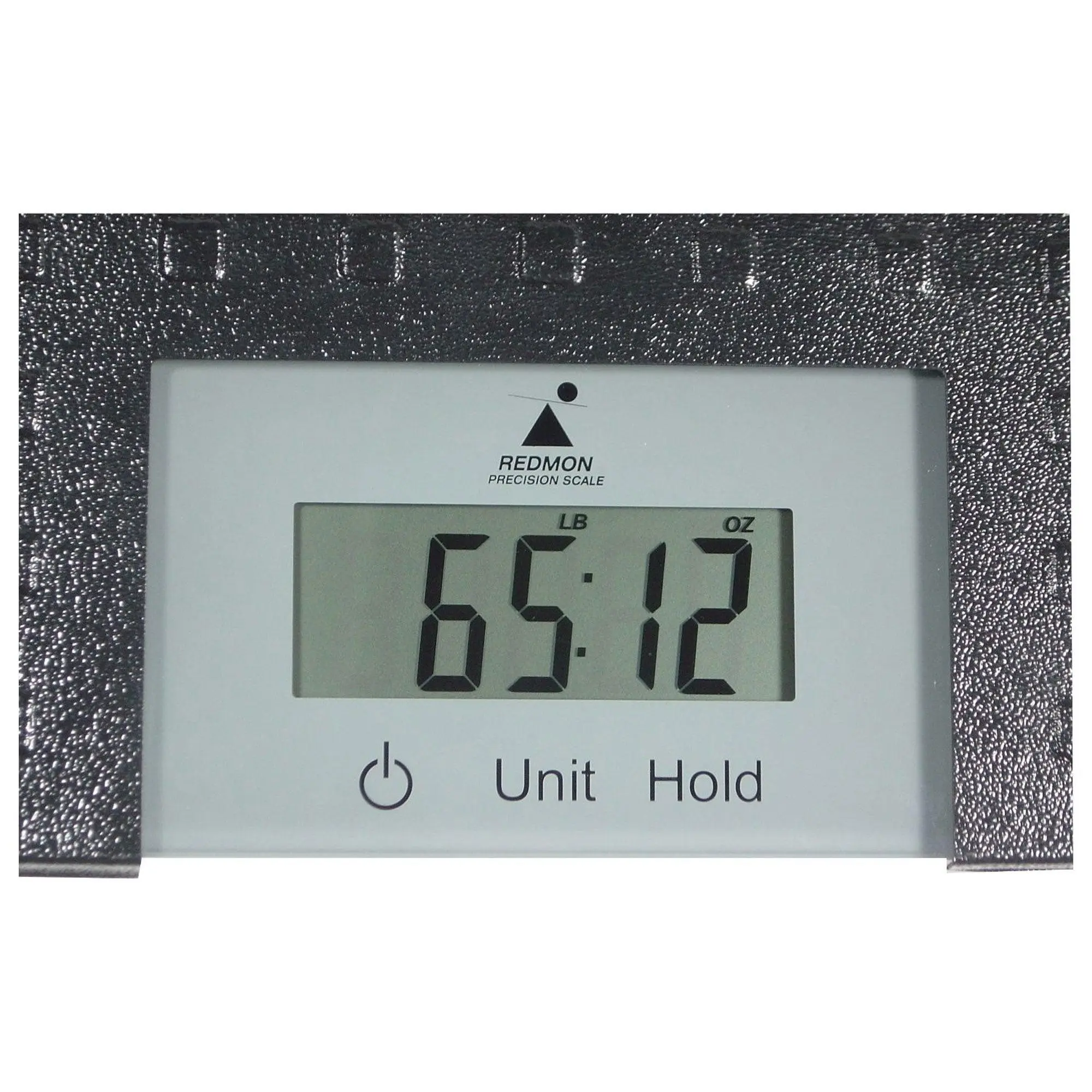 The Redmon Precision Digital Pet Scale accurately weighs pets up to 225 pounds, featuring a large, non-slip rubberized mat (28 x 16 inches) for comfort and safety. It displays weight in pounds or kilograms, with a hold feature to capture measurements even if your pet steps off. It measures in 2-ounce increments and requires 2 AAA batteries (not included). Ideal for dogs, cats, and small livestock.