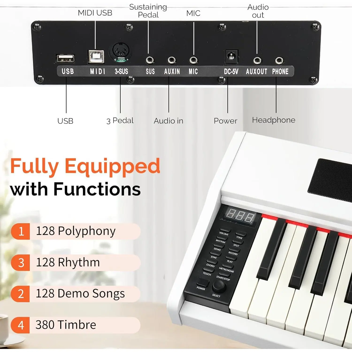 GLARRY Digital Piano Keyboard with Stand, Portable 88 keys Semi-Weighted Electric Piano with Pedal for Beginner, Bluetooth, Triple Pedals, Power Supply, 2 SpeakersGLARRY Digital Piano Keyboard with Stand, Portable 88 keys Semi-Weighted Electric Piano with Pedal for Beginner, Bluetooth, Triple Pedals, Power Supply, 2 SpeakersGLARRY Digital Piano Keyboard with Stand, Portable 88 keys Semi-Weighted Electric Piano with Pedal for Beginner, Bluetooth, Triple Pedals, Power Supply, 2 SpeakersGLARRY Digital Piano Keyboard with Stand, Portable 88 keys Semi-Weighted Electric Piano with Pedal for Beginner, Bluetooth, Triple Pedals, Power Supply, 2 Speakers
