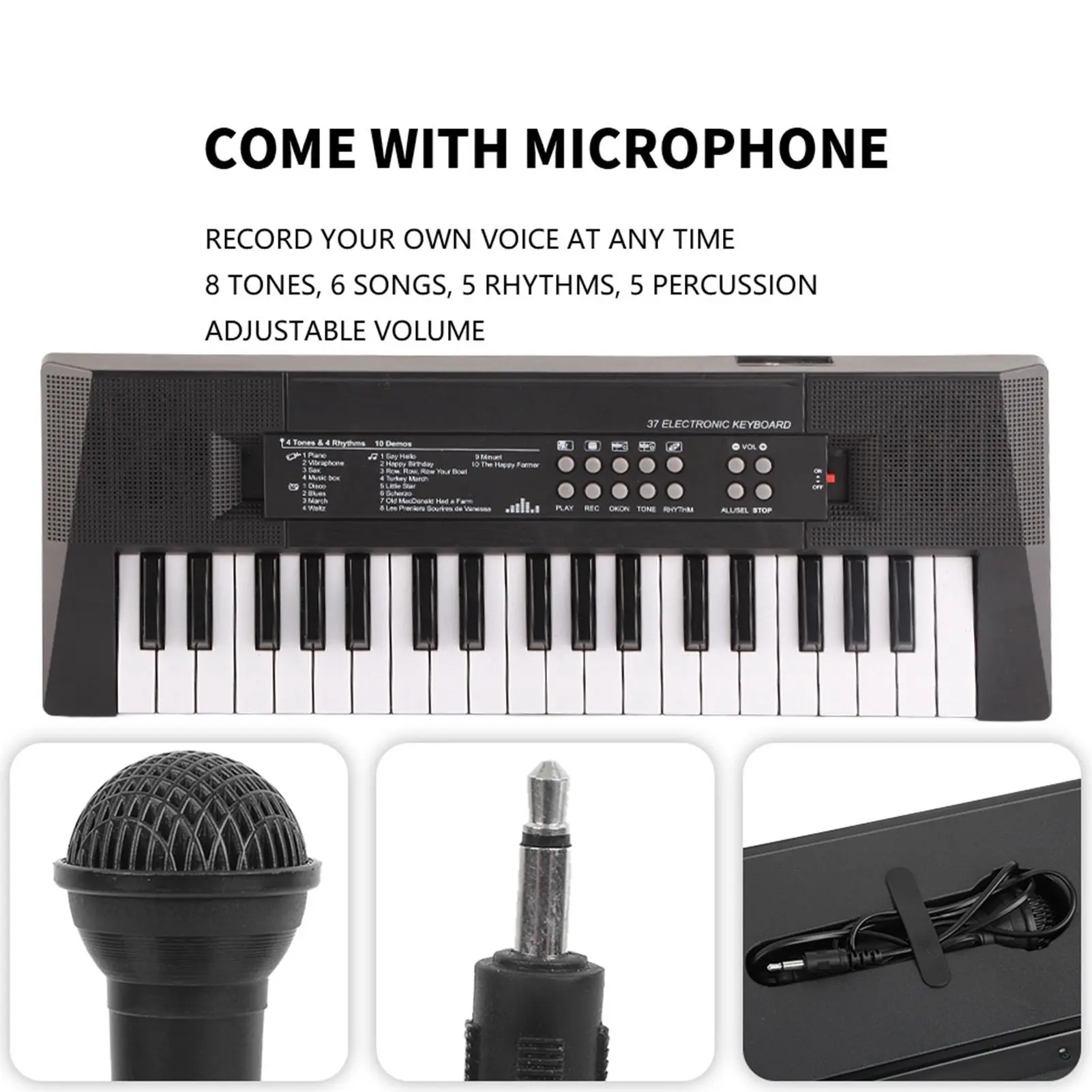 5. 37-key digital piano keyboard with microphone and recording function, a perfect birthday and Christmas gift, very suitable for beginners