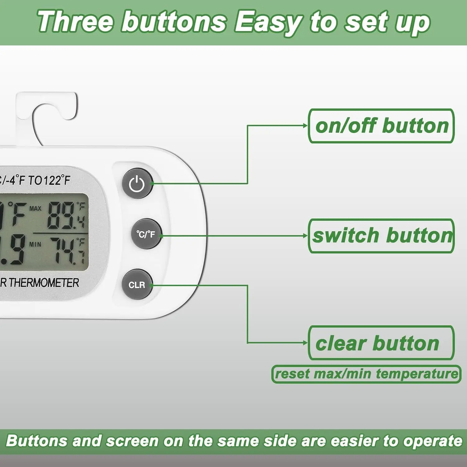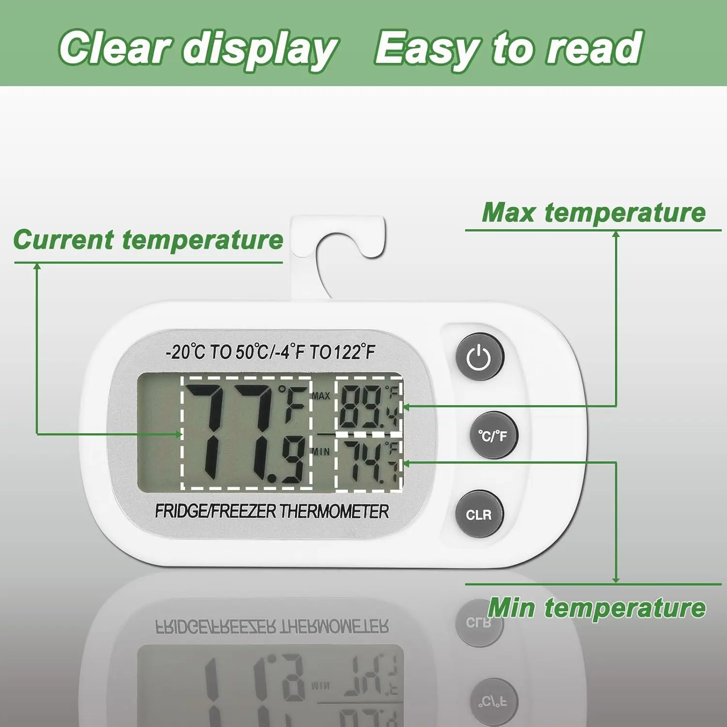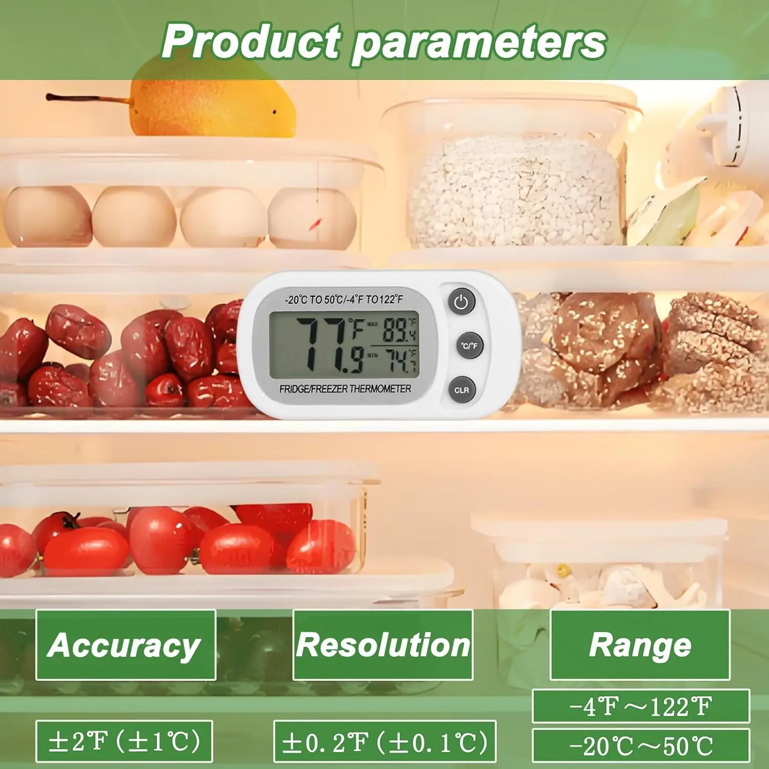 【Multiple Placement Methods】the digital for refrigerator with hook bracket and can be placed horizontally, hung inside the refrigerator, and attached to the refrigerator wall.meeting your needs in different scenarios better.