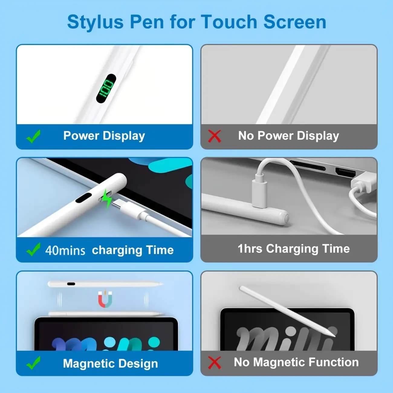 Digital Screen Capacitive Pen, Touchscreen Pen, Universal Touch Stylus for Android iOS Windows, Compatible with iPad Apple Huawei Xiaomi Tablets