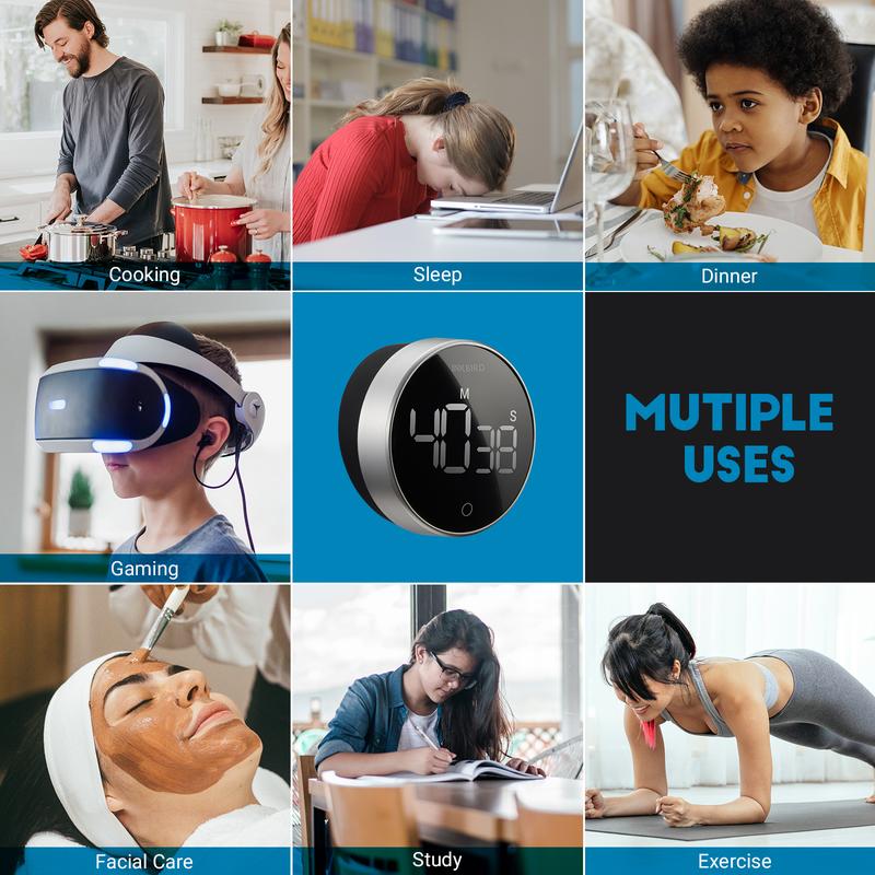 Simple Operation: Simply turn the device to set a countdown timer, turn left to set minutes, turn right to set seconds, even children and elderly people can operate it smoothly. A flat button on the screen can start, stop and reset a timer, abandons the traditional button design, ensures the fluency of the equipment.