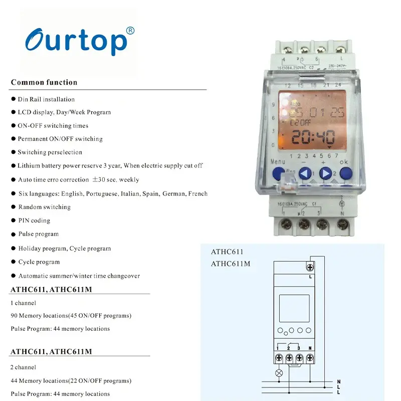 ATS16 Electronic Staircase Timer Ourtop 16A Multi-function time setting from 30 seconds to 20 minutes