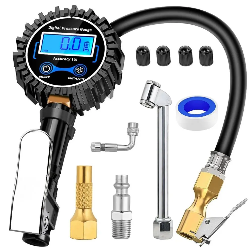 And a bright backlit LCD display ensures clear readings in any light condition, even in darkness.Professionally calibrated to always return a reading within 1% of the exact pressure of your tire and 0.1 display resolution. No more guessing.