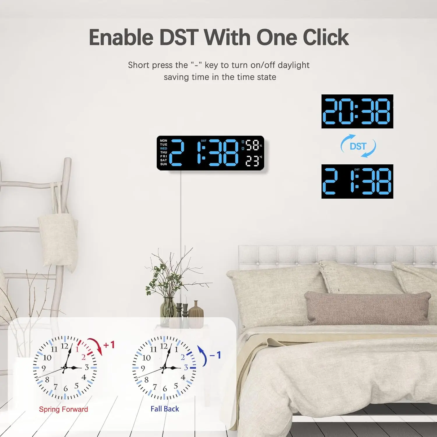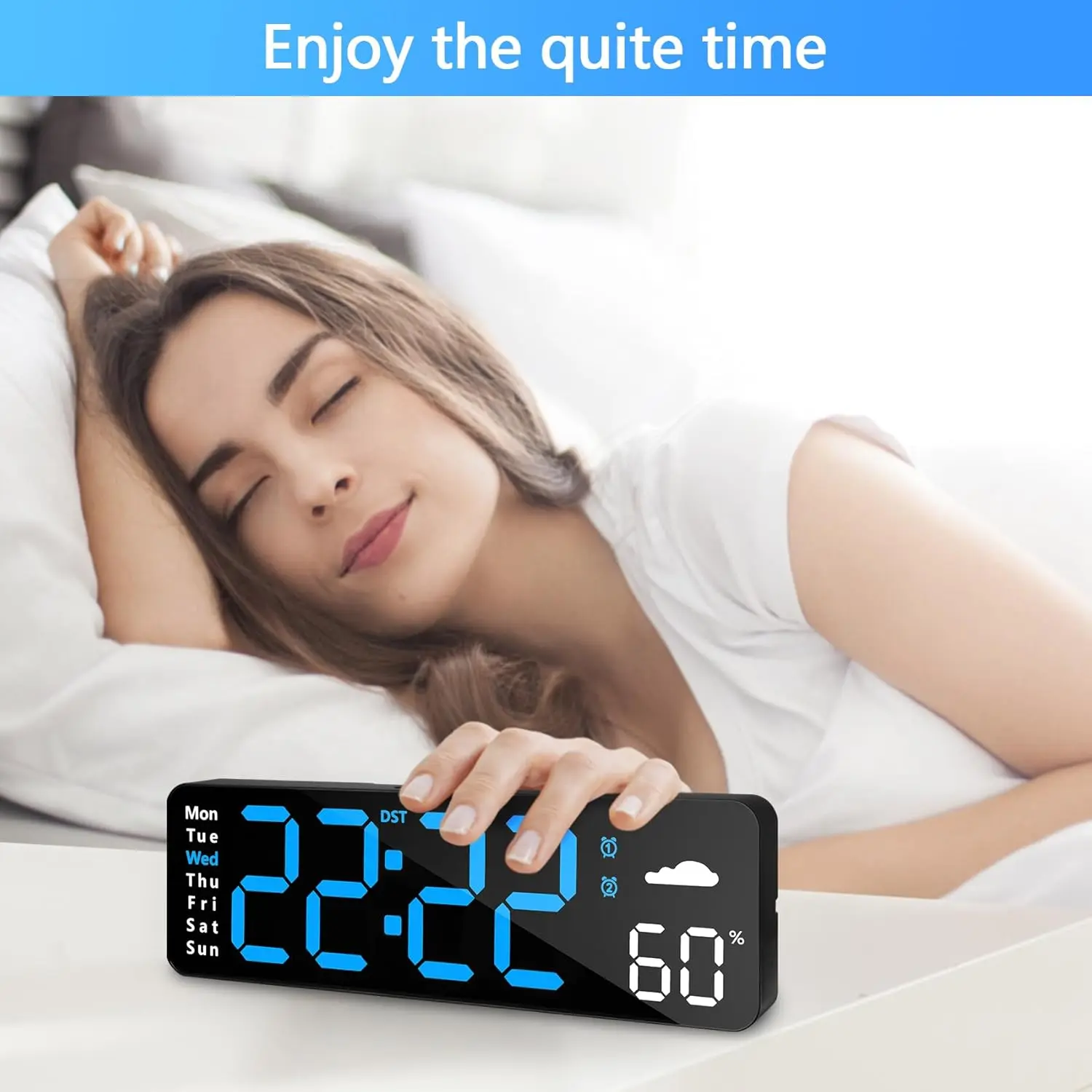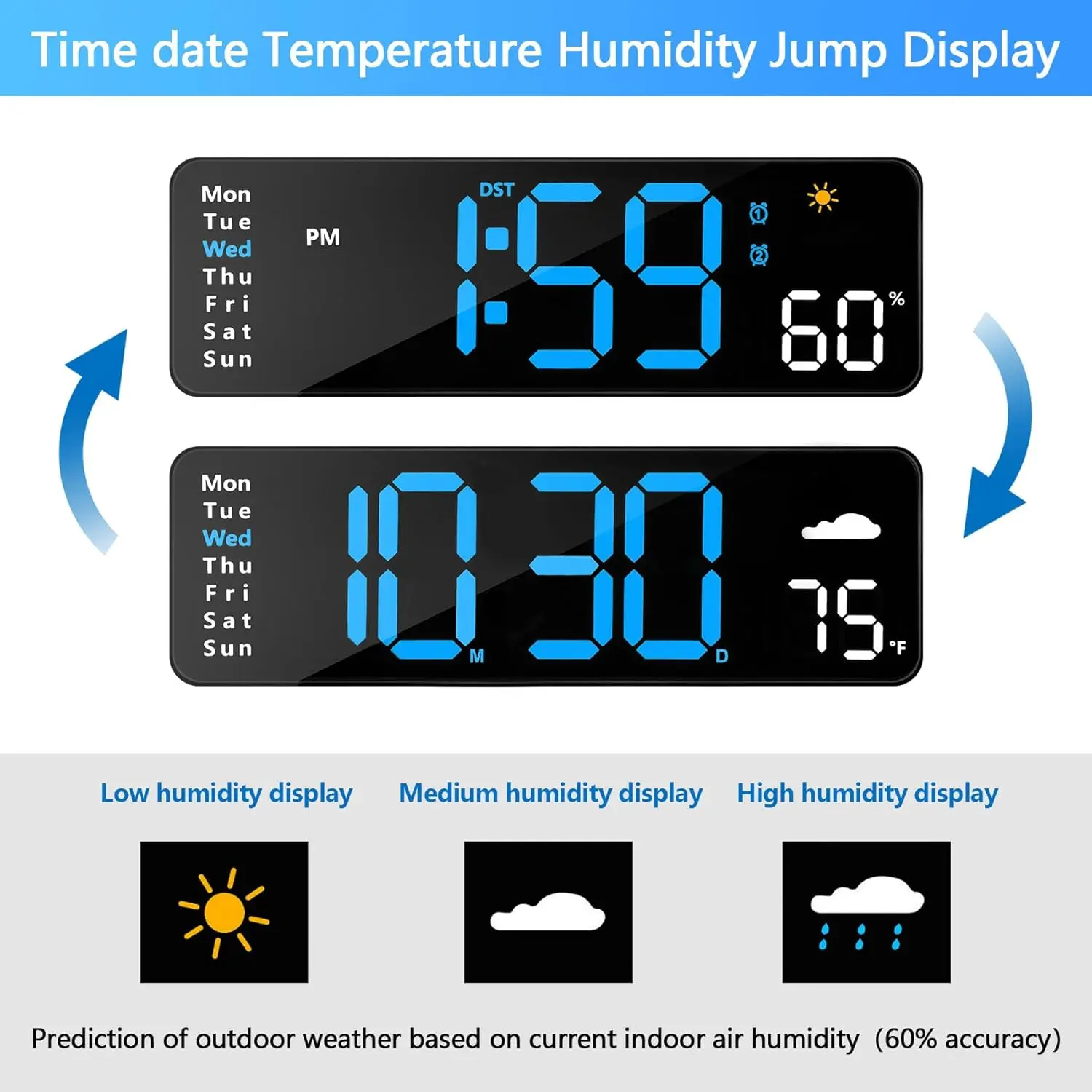 ·Multiple Functions: Includes temperature, DST, auto-dimming, humidity, and snooze.