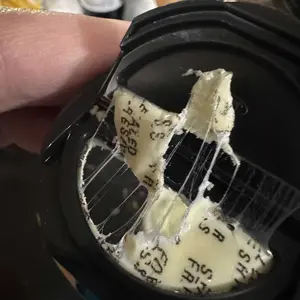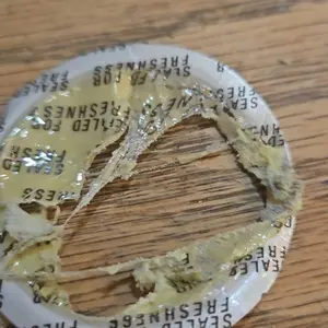 I just open this and was going to take the seal out to use. It had this stringy strong smelling plastic of some sort. Smelled toxic!