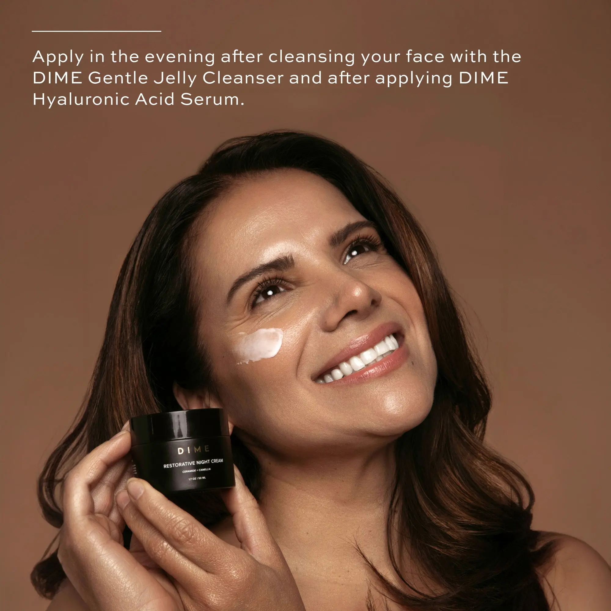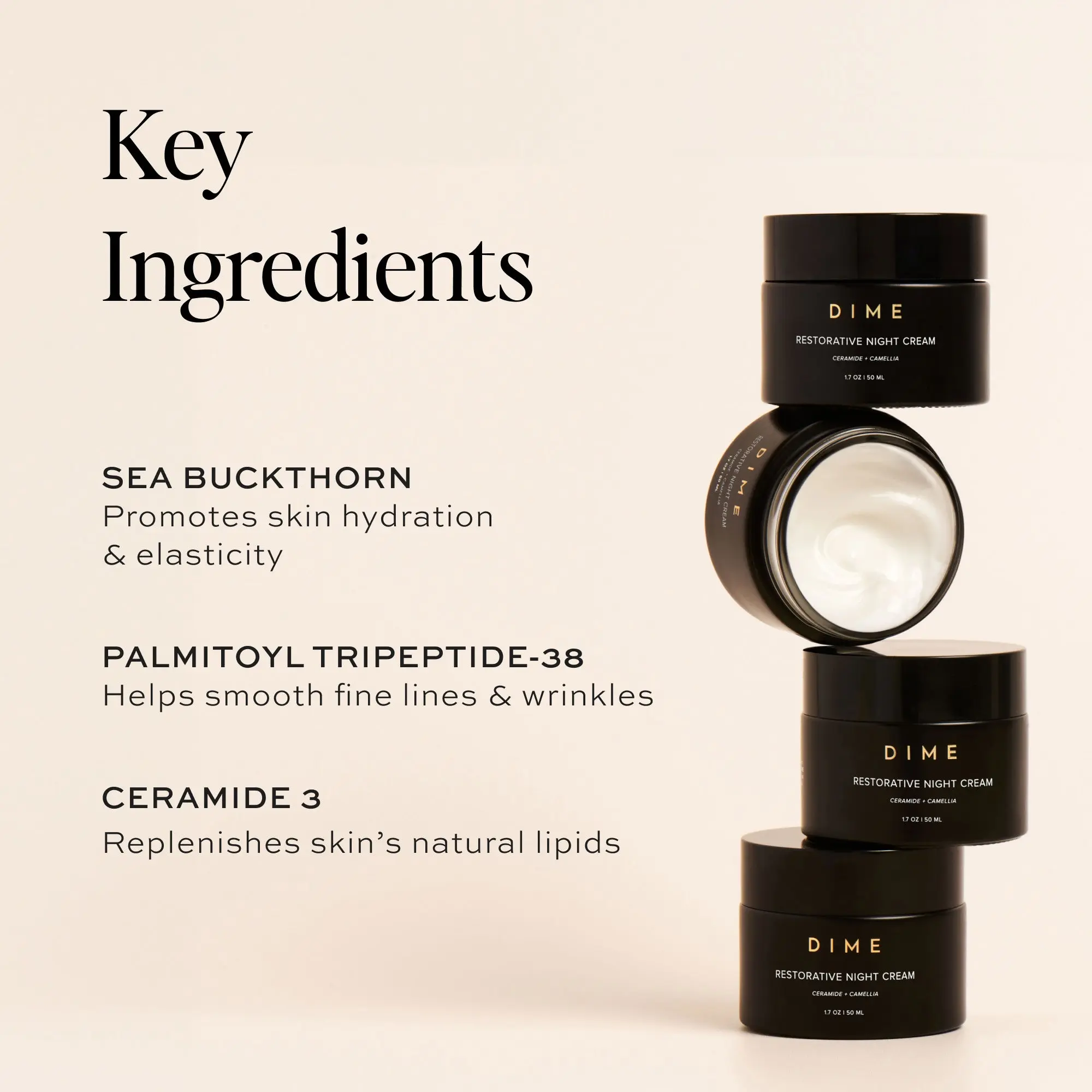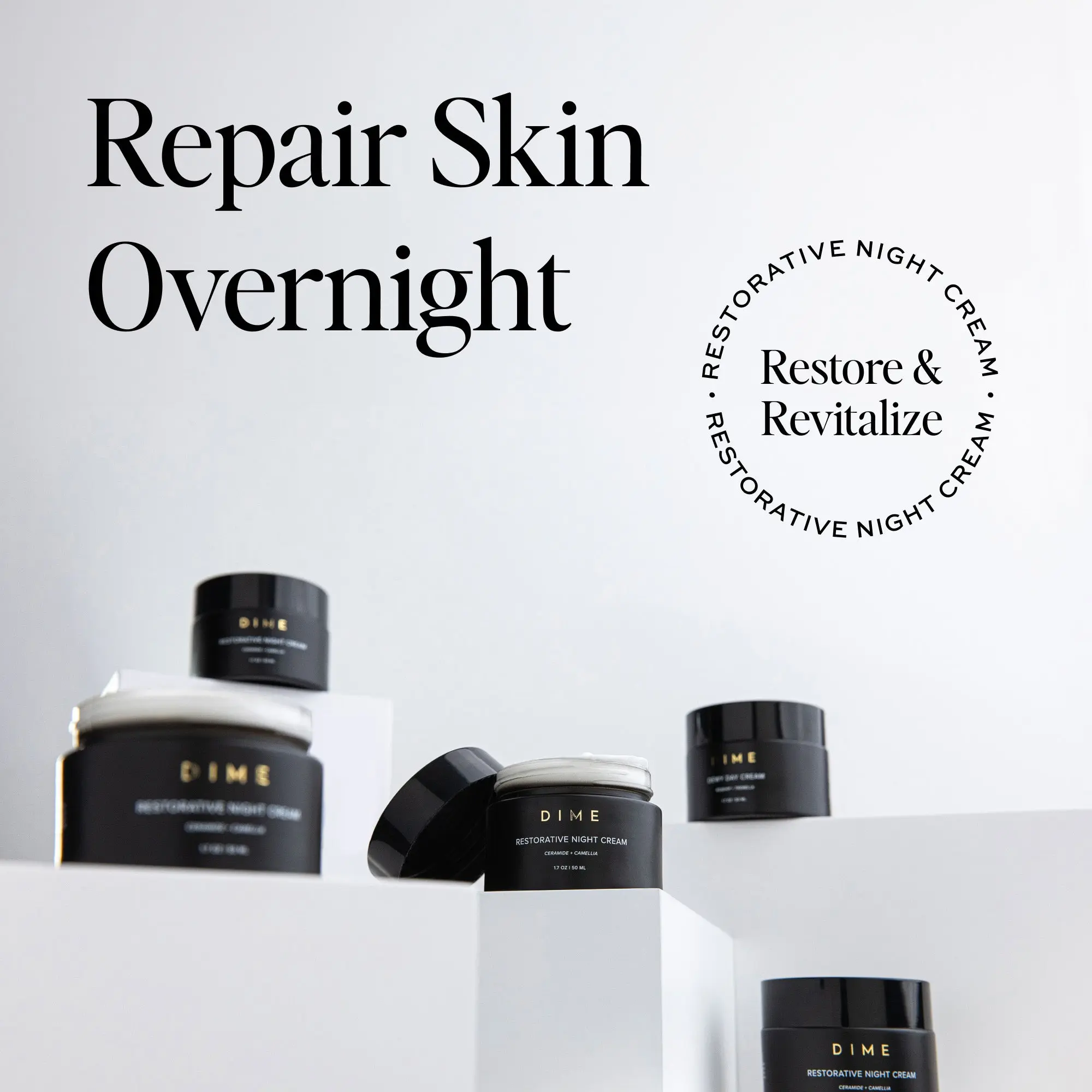 Lock in moisture all night long with our Restorative Night Cream. Our gentle and hydrating cream helps to repair your skin overnight while reducing the look of fine lines, wrinkles, and pores.