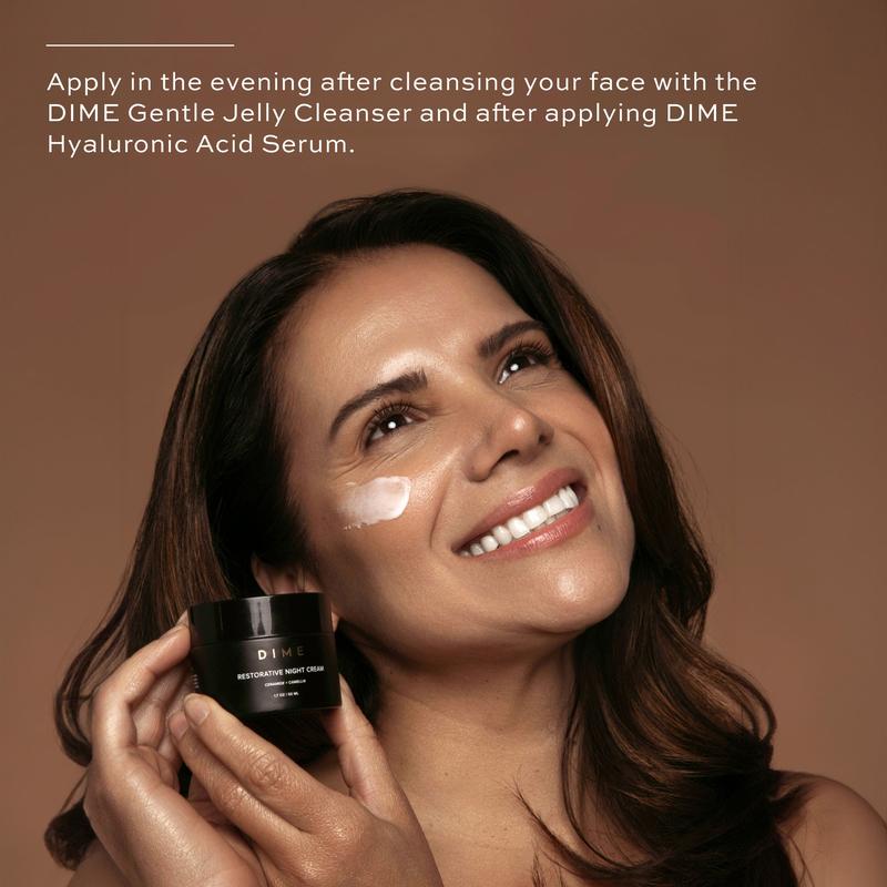 Apply in the evening directly after use of DIME facial serums. For best results, use daily.