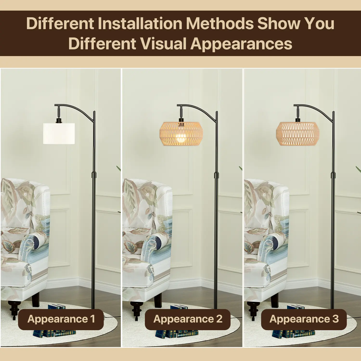 1. Bohemian Rattan Floor Lamp. Featuring two removable shades—one hand-woven from 100% rattan and the other crafted from soft fabric—you can effortlessly mix and match to suit your style. Whether you're aiming for a minimalist or bohemian vibe, this lamp adapts to your design preferences, offering endless possibilities for personalization.