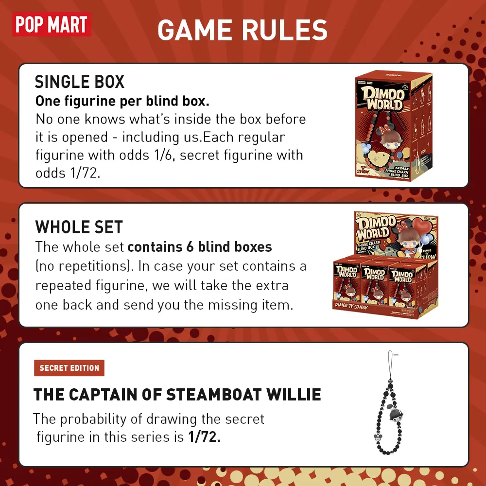 ·We also CANNOT guarantee that any purchase will definitely get the secret edition (please refer to the probability on product package).