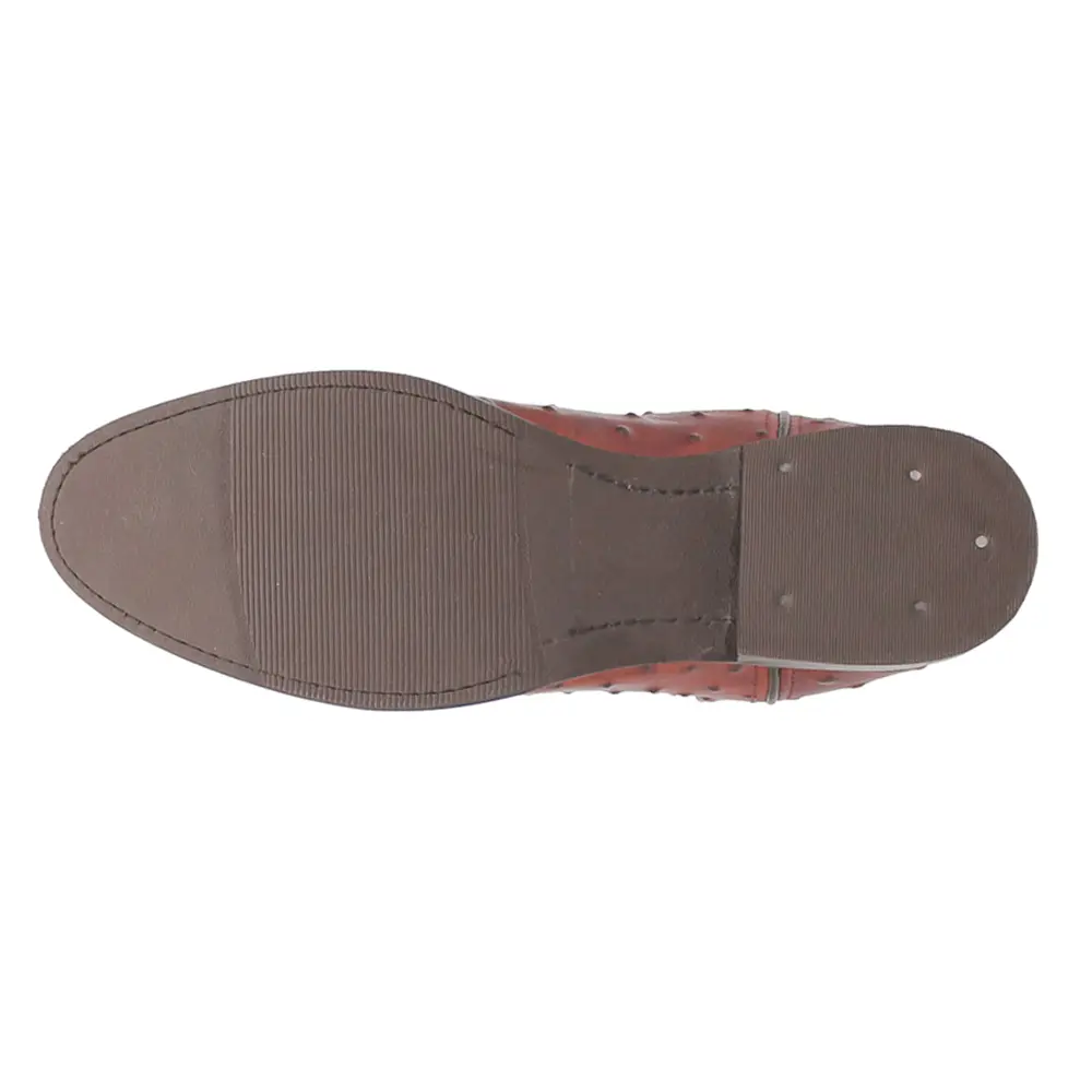 5. Dingo Mens Ranger Leather Embroidered Ostrich Print Round Toe Dress Boots Mid Calf - Brown