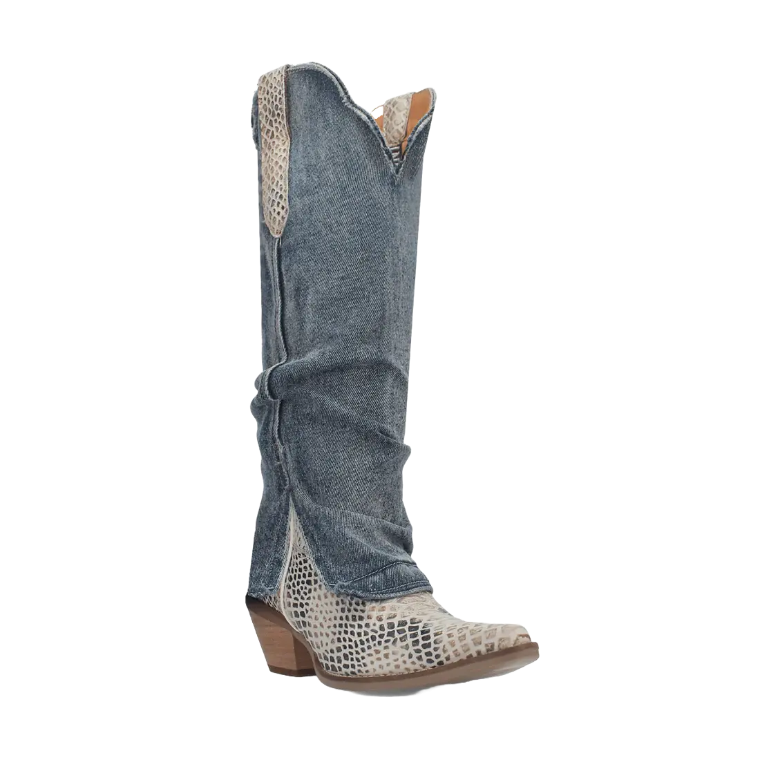 Dingo Ladies Shabby Denim Blue Lizard Leather Tall Boots DI245-BL