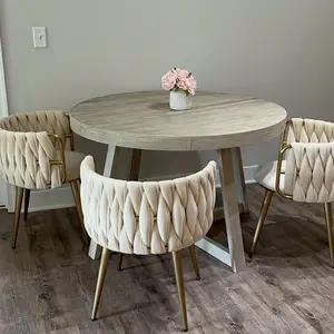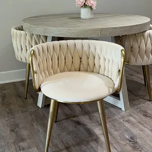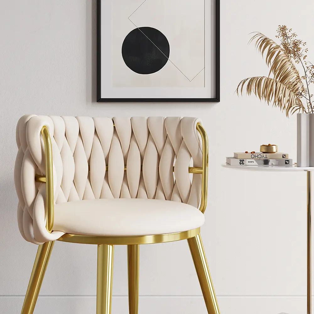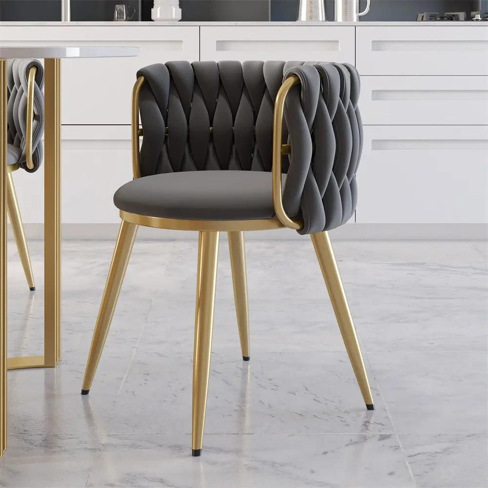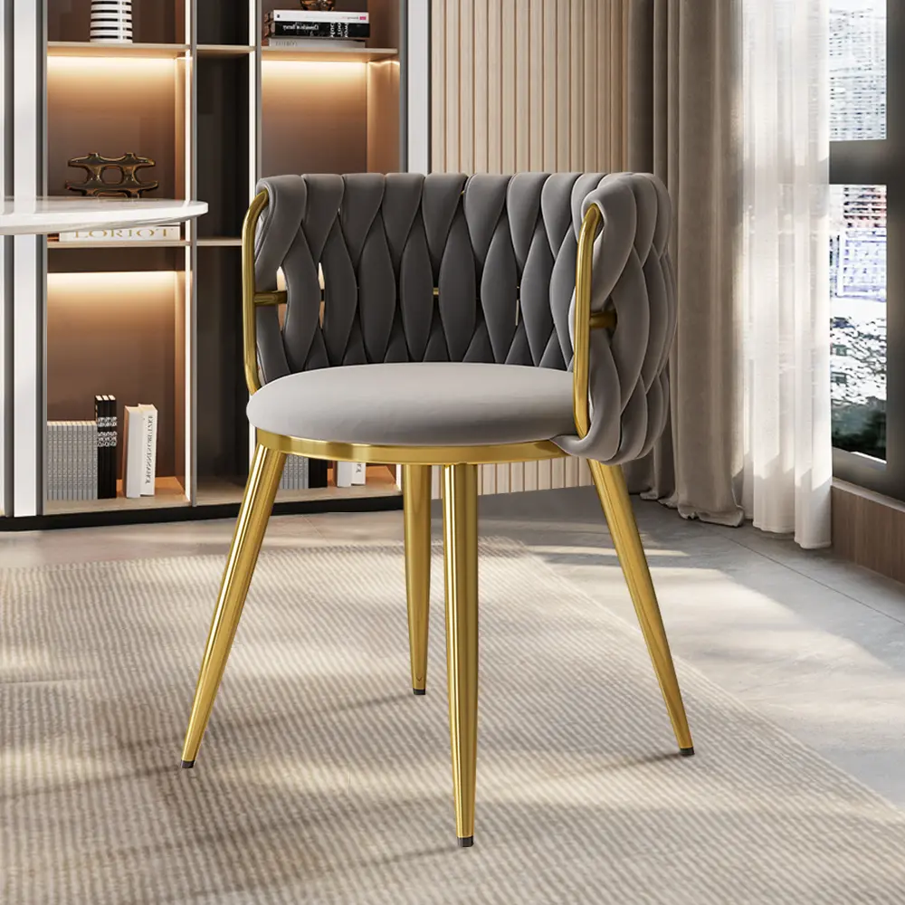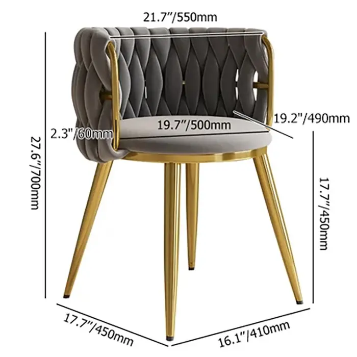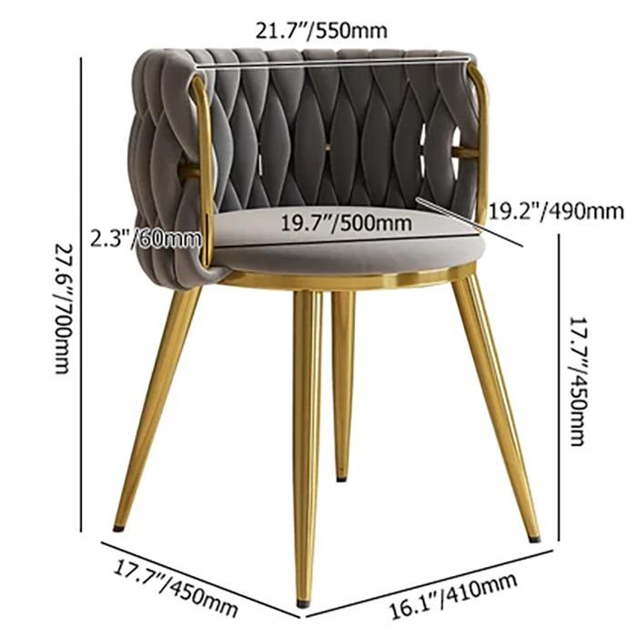 Boasting clean lines and a sleek modern look, this dining chair makes an ideal focal point in your space. It features the barrel back with velvet upholstery that offers statement-making appeal. Padded with high-density foam padding, this chair cradles you in comfort while you enjoy a meal with friends. The stainless steel frame in gold ensures long-lasting service. Perfect for dining rooms, living rooms, and bedrooms.