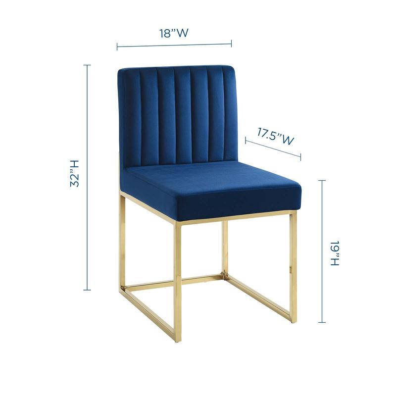 Modway Carriage Channel Tufted Sled Base Performance Velvet Dining Chair in Gold Navy