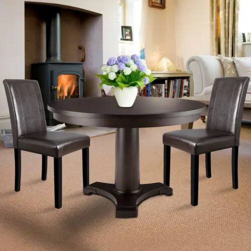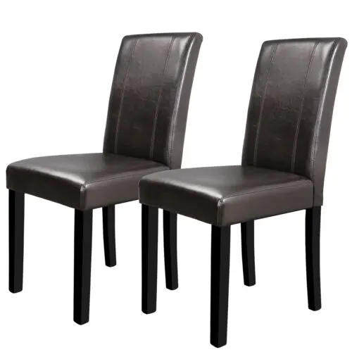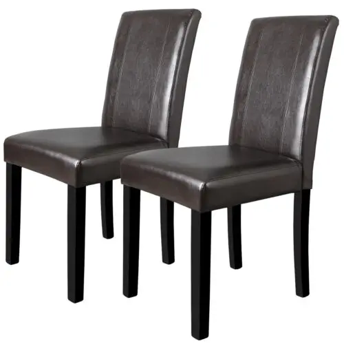 - The chairs feature a modern style with brown blended leatherette upholstery and a black frame, providing a stylish and elegant appearance.