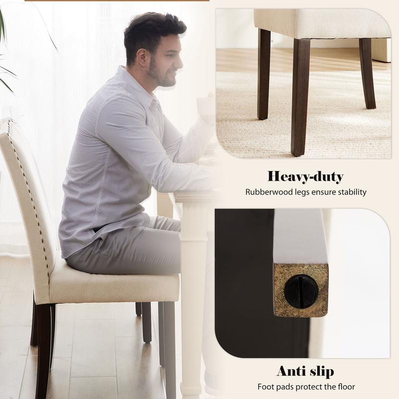 ·【Upgrade Design】Our upholstered dining chair sets have equipped with high elasticity and breathable linen fabric. Thickened sponge filling of the backrest and seat, and double elastic structure design offer a exceptional comfortable seating experience to you. High backrest is designed based on ergonomic standard and human body features for a strong comfortable back support.