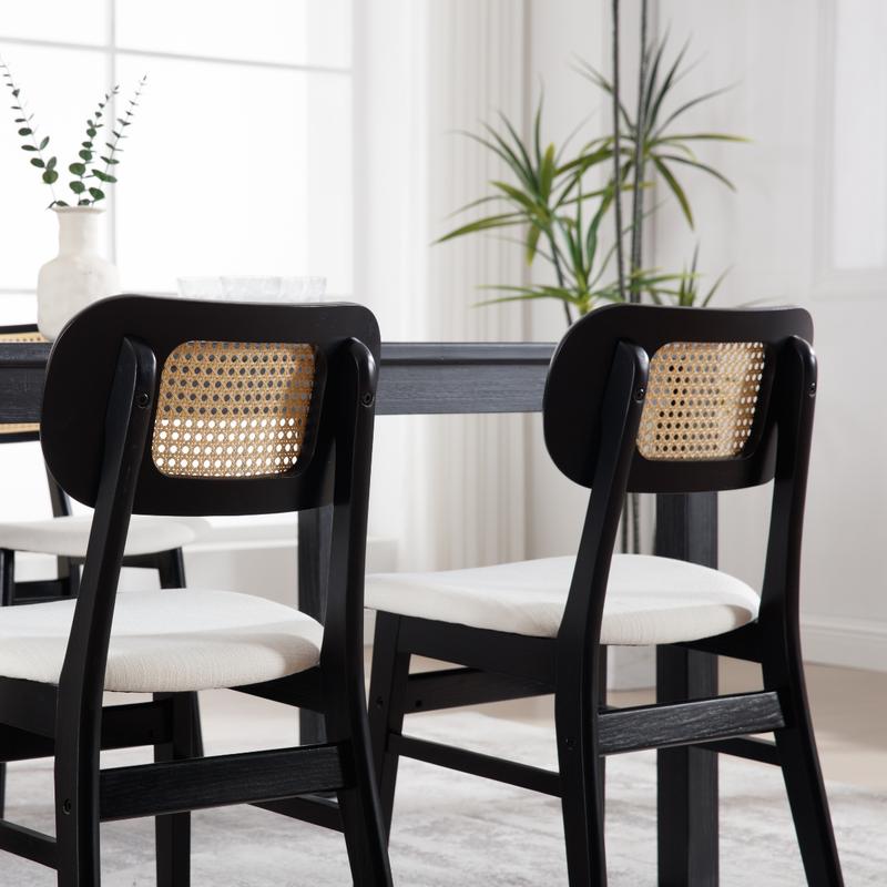 5. CHAIRUS Rattan Dining Chairs Set of 2,Farmhouse Cane Back Dining Room Chairs Mid Century Kitchen Chairs with Black Wood Frame Linen Upholstered Side Chairs for Kitchen, Restaurant, Dining Room, Bistro, Beige