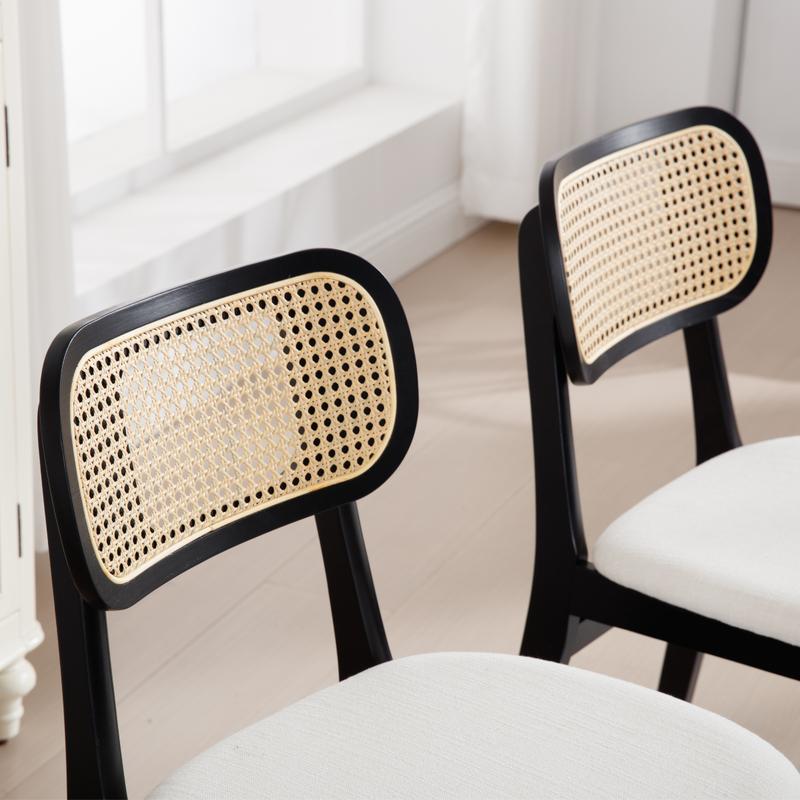 CHAIRUS Rattan Dining Chairs Set of 2,Farmhouse Cane Back Dining Room Chairs Mid Century Kitchen Chairs with Black Wood Frame Linen Upholstered Side Chairs for Kitchen, Restaurant, Dining Room, Bistro, BeigeCHAIRUS Rattan Dining Chairs Set of 2,Farmhouse Cane Back Dining Room Chairs Mid Century Kitchen Chairs with Black Wood Frame Linen Upholstered Side Chairs for Kitchen, Restaurant, Dining Room, Bistro, Beige