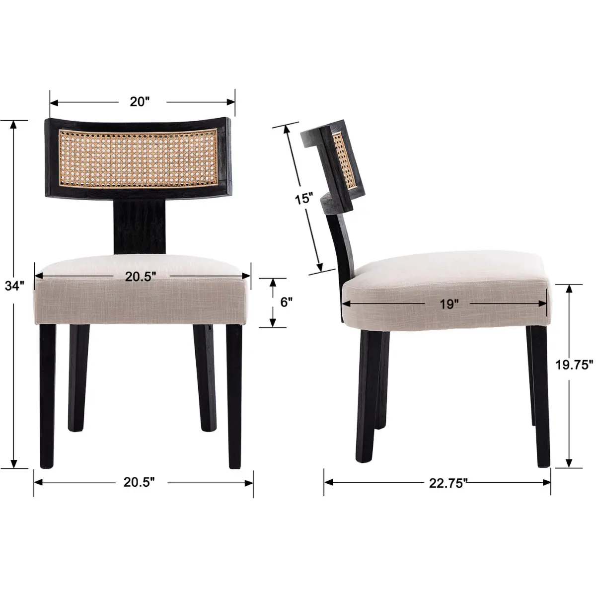 【Comfort That Lasts】Our retro dining chairs is made of rich linen fabric, the seat is cushioned with high resilient foam and durable spring.The 20.5’’widened and 6'' thickened padded seat provides maximum comfort while you dine. The breathable mesh rattan backrest is beautifully designed and helps with ventilation and heat dissipation.