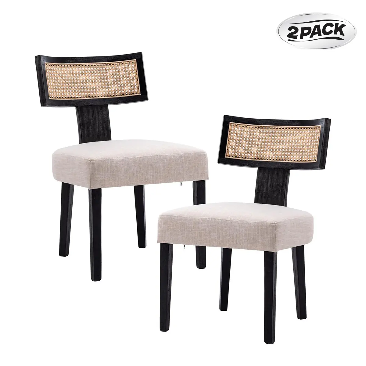 【Elegant Design】These rattan back dining chairs are a great way to add a mid-century modern flare to your eating space. Simple lines, soft cushions, cane backrest, and sturdy wooden legs make this chair simple and retro. It is the perfect decoration for your kitchen,living room, dining room, bedroom, bistro, coffee shops.