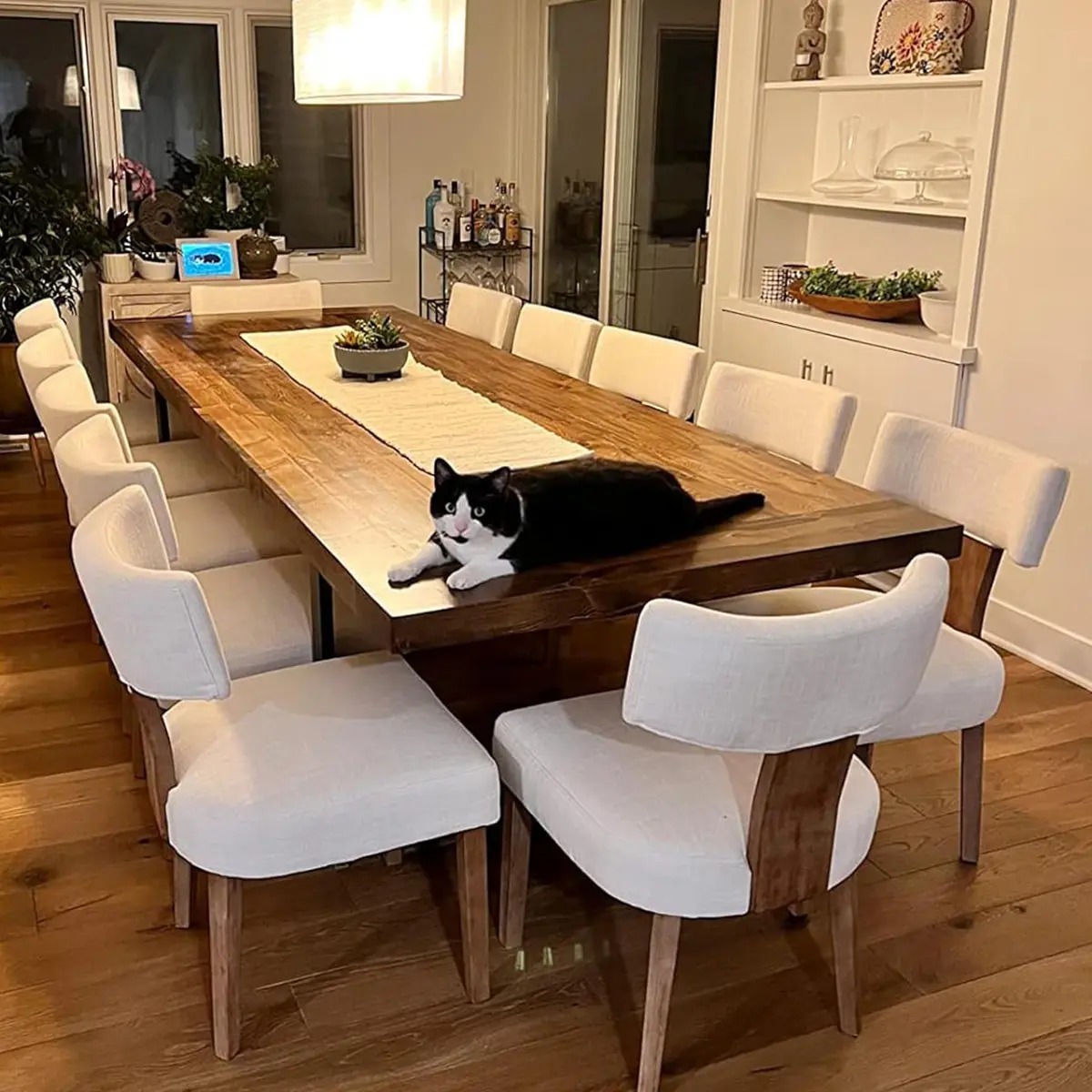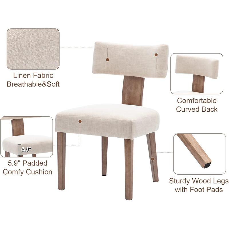 【Comfy Fabric】This dining chair is decorated with comfortable linen-like fabric, matched with a high-resilient sponge and ergonomically curved backrest provide you comfortable seat feeling.