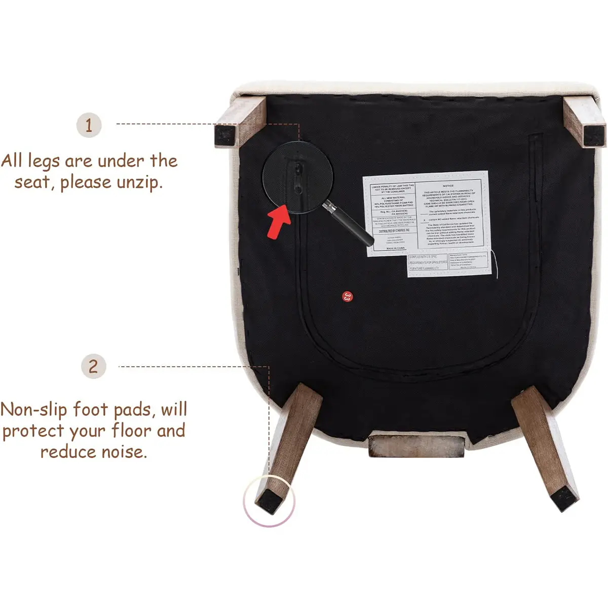 【 Easy to Assemble】Linen upholstered dining chairs equipped with installation instructions, quality hardware and installation tools, each chair takes only 10 minutes to install.