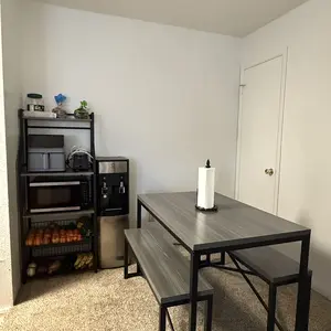 FITS A FAMILY OF 4: Two bench-style seats with a large 45.5in by 29.5in table provide space for the whole family to enjoy
