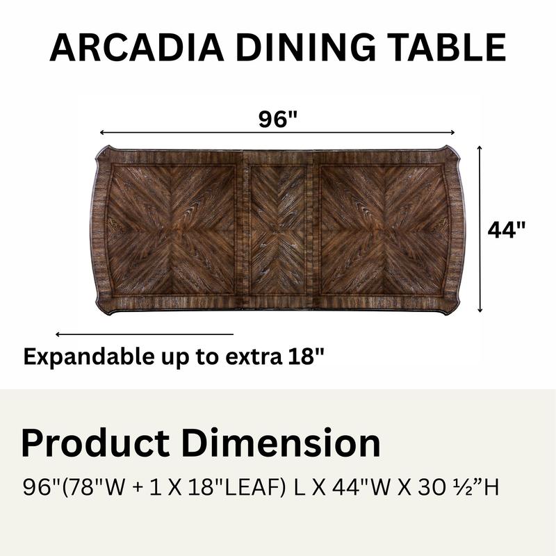 ·Dining Table: 96"(78"W + 1 X 18"LEAF)L X 44"W X 30 1/2"H