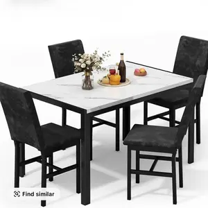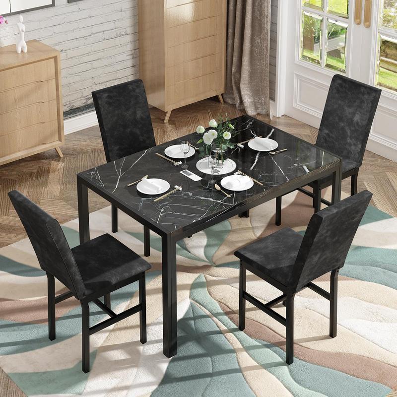 ·Luxurious Faux Marble Finish: Elevate your dining experience with our stunning faux marble tabletop dining table set for 4. Offering elegance without the expense, its smooth, waterproof surface ensures easy maintenance and a spotless look every day.