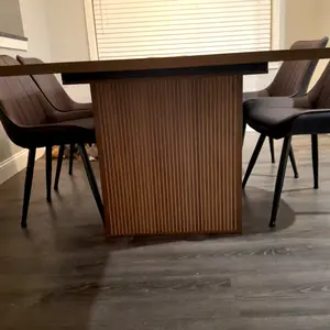 ·ELEGANT & DURABLE: Crafted from high quality MDF and wood veneer, the tabletop and wood strip base provide lasting durability and an elegant modern farmhouse aesthetic, capable of holding up to 330 pounds. The sealed tabletop is water resistant and easy to clean with a damp cloth, protecting against scratches and spills.