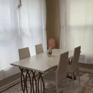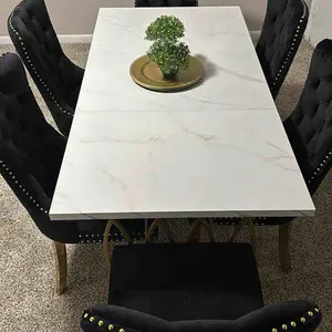 2. Modern Design: This table features an ethereal white faux marble top coupled with a gold steel frame, offering a blend of contemporary design with a touch of opulence and timeless elegance, perfect for any dining area or outdoor gathering.