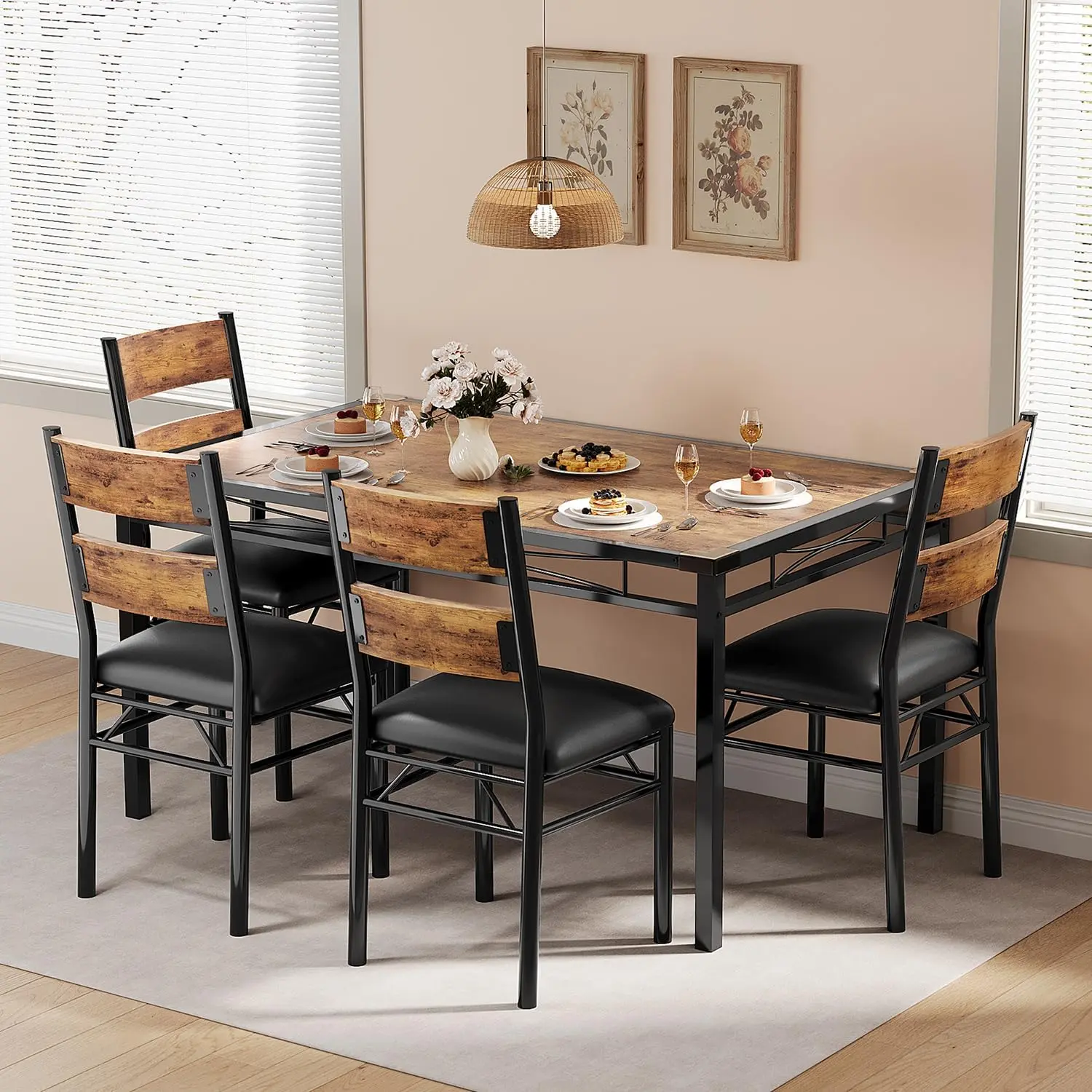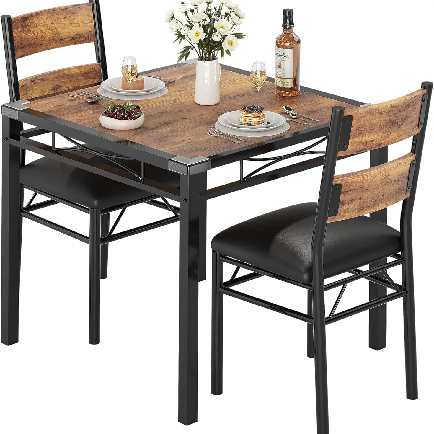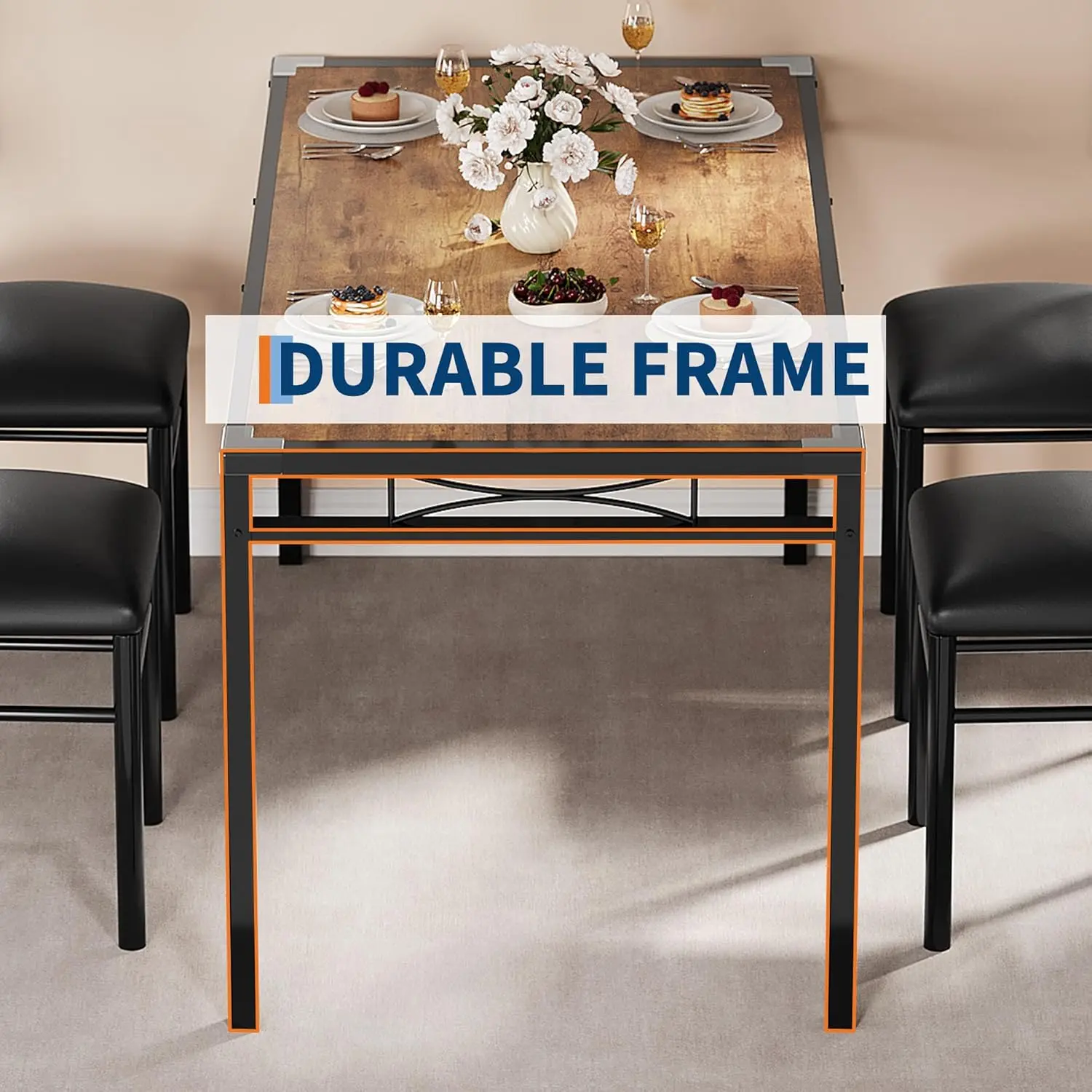 ·Adamant and Durable Construction Design: This small kitchen table set for 4 is made of reinforced thickened steel frames with metal legs to ensure the solidity of the overall structure. The combination of thick wood planks and sturdy metal material with a smooth surface provides ample weight capacity for a reliable dining experience. The dining table has a weight capacity of up to 300 pounds, while each dining chair can hold up to 400 pounds