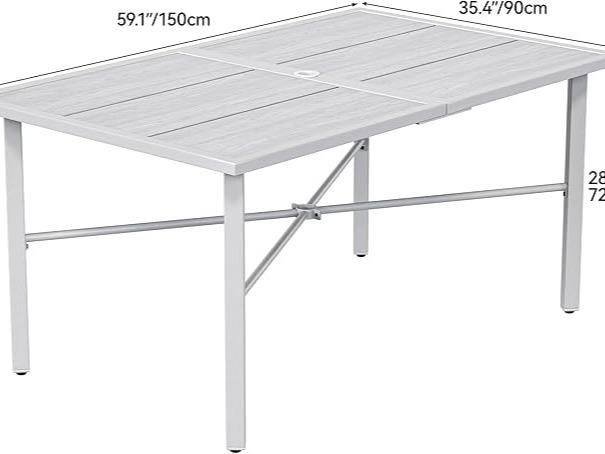 No-hassle Assembly: All parts and clear instructions are included for a quick assembly of the outdoor table; Table size: 59.1" x 35.4" x 28.3" (L x W x H); Total weight: 42.99 pounds