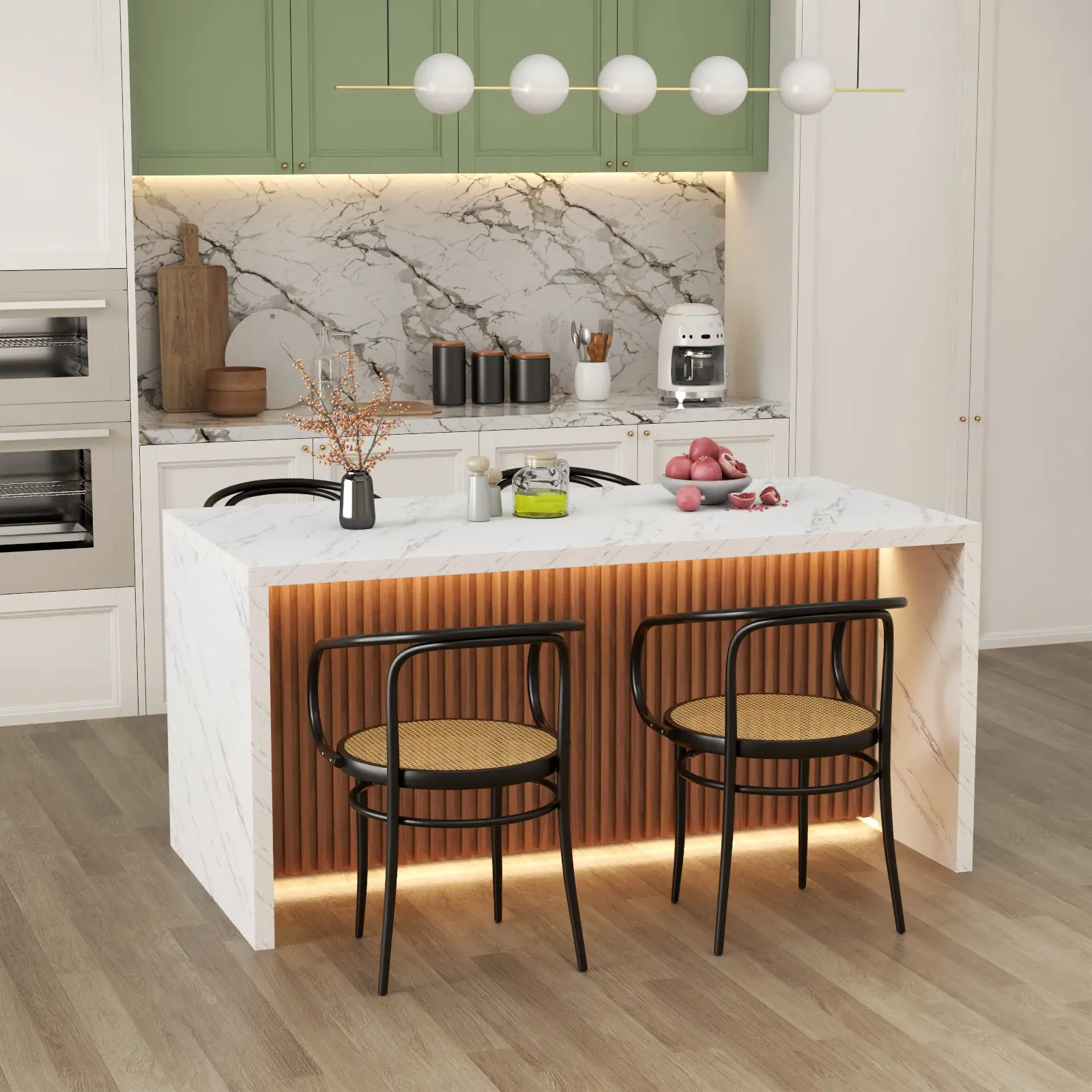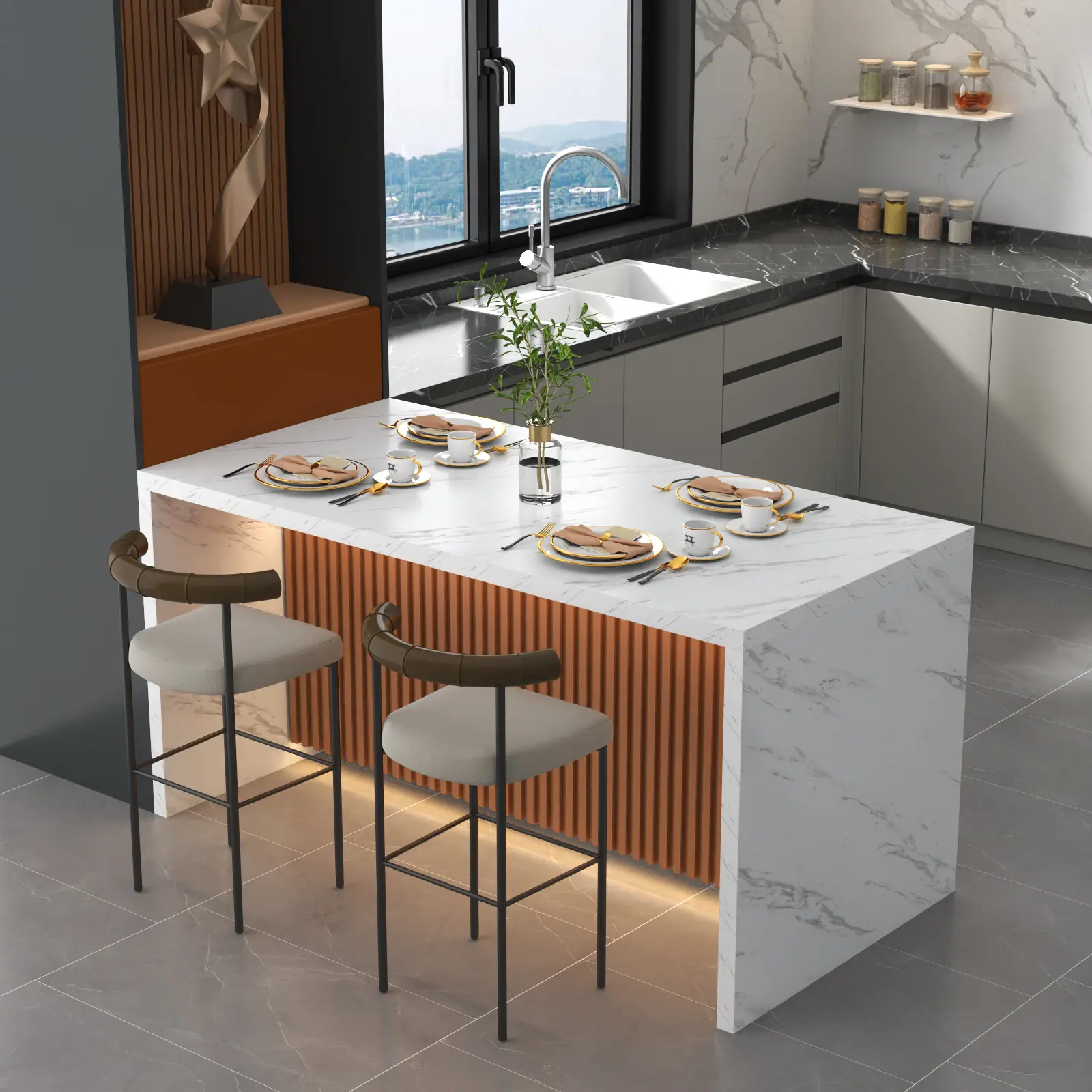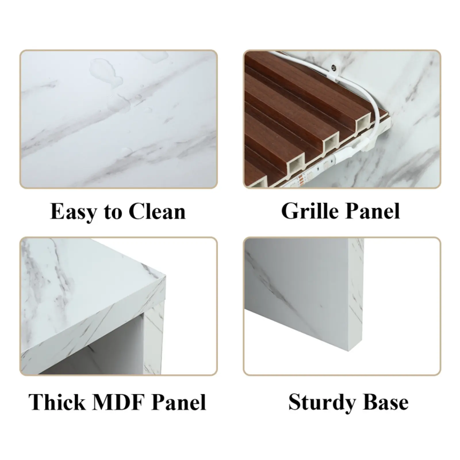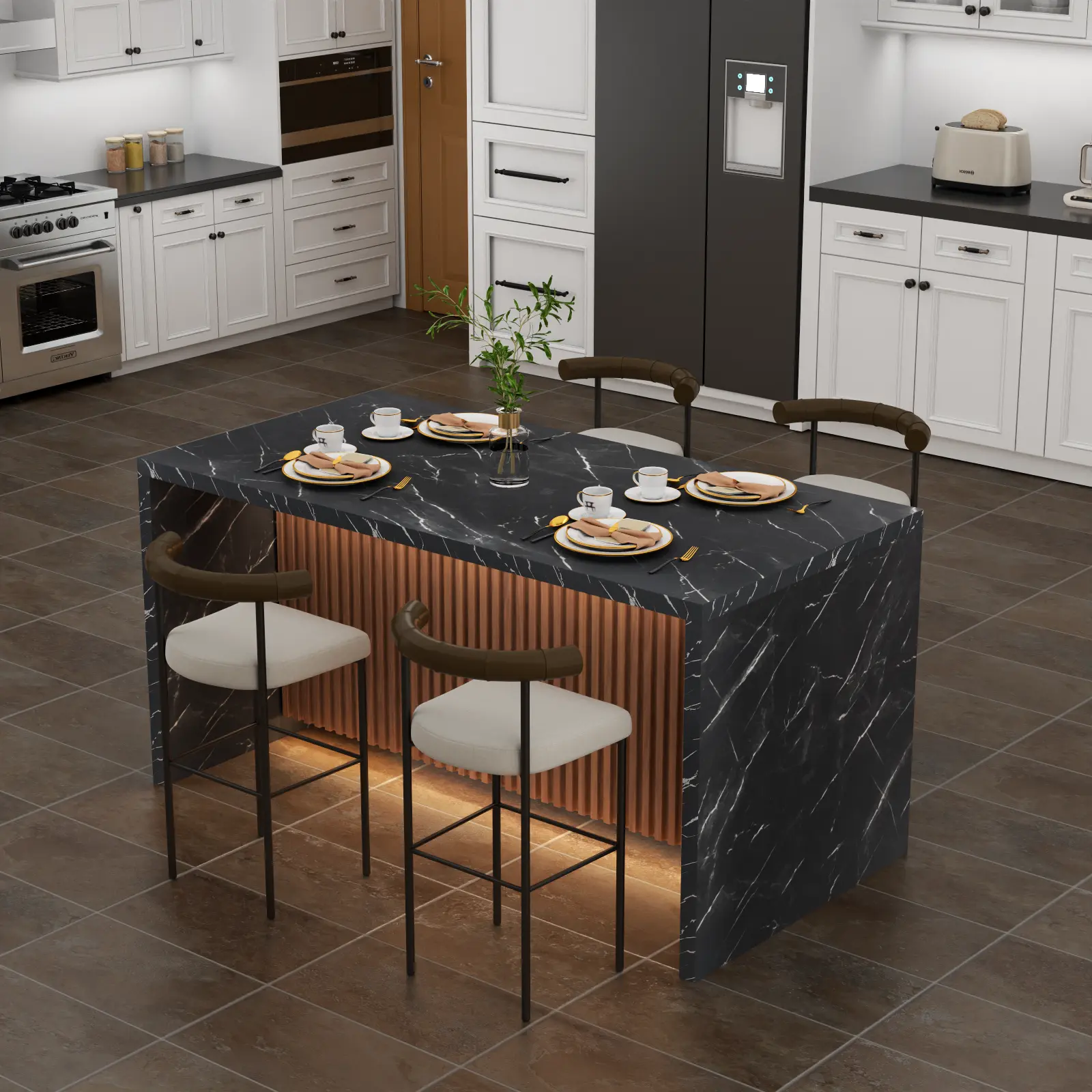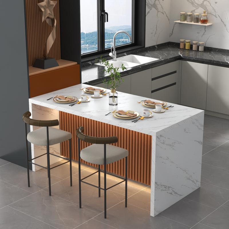 White Marble stripes paired with a bottom grille design exude luxury. This table satisfies vanity and serves as a conversation piece. If you can't find the right style elsewhere, consider this artificial marble island table. It's a beautiful focal point for any home space.