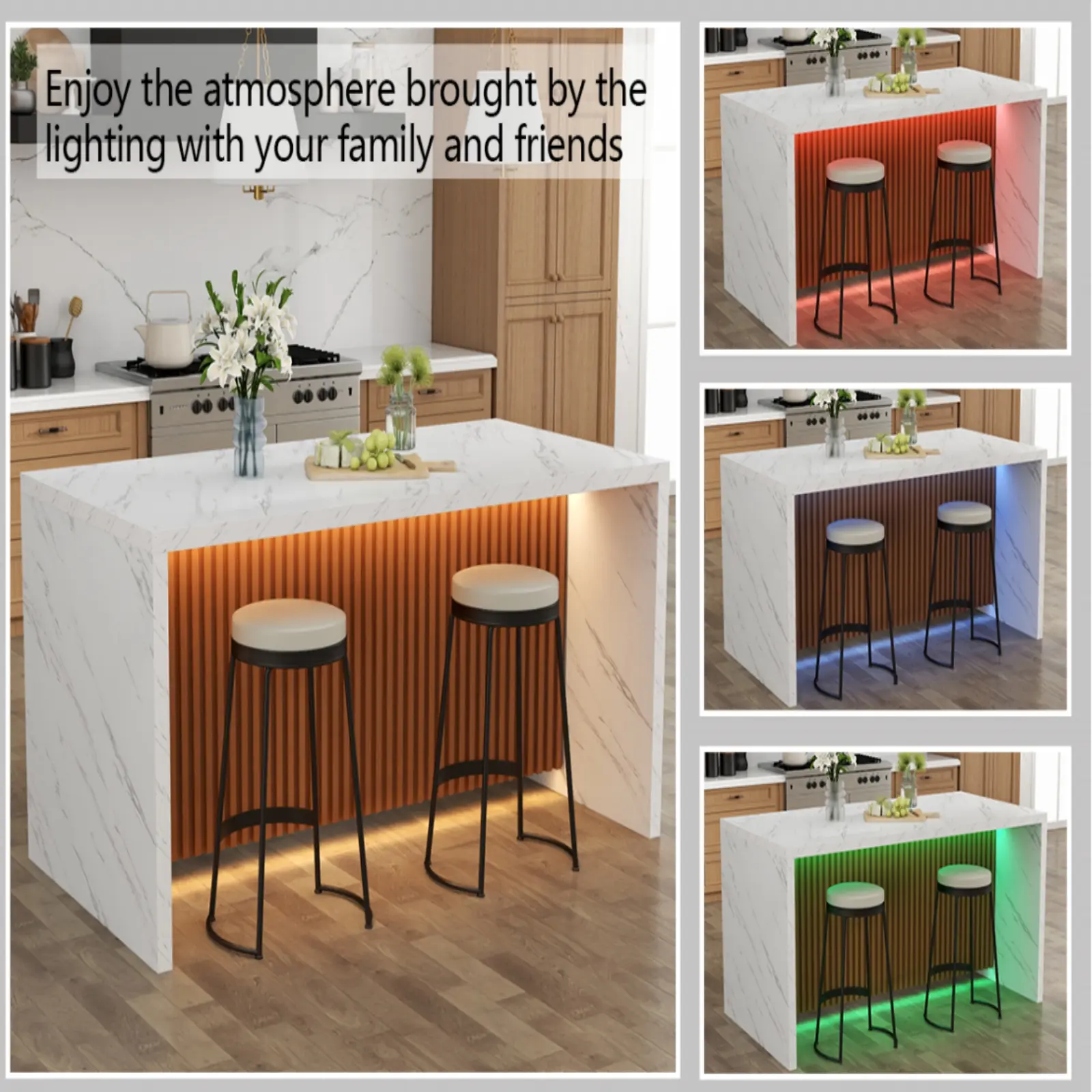 Equipped with multi-color RGB LED light strips, this table features built-in lights with a remote. Change colors via the app with an unlimited palette. The LED lighting is bright and dense, suitable for evening dinners or gatherings. Customize the ambiance effortlessly.