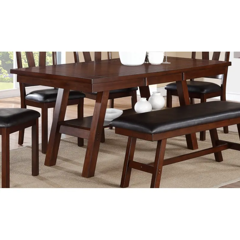 Dining Table Rectangle Dining Table w Shelve 1pc Table Only Rubber wood Dark Walnut Finish Dining Room Furniture(High end and high-quality)