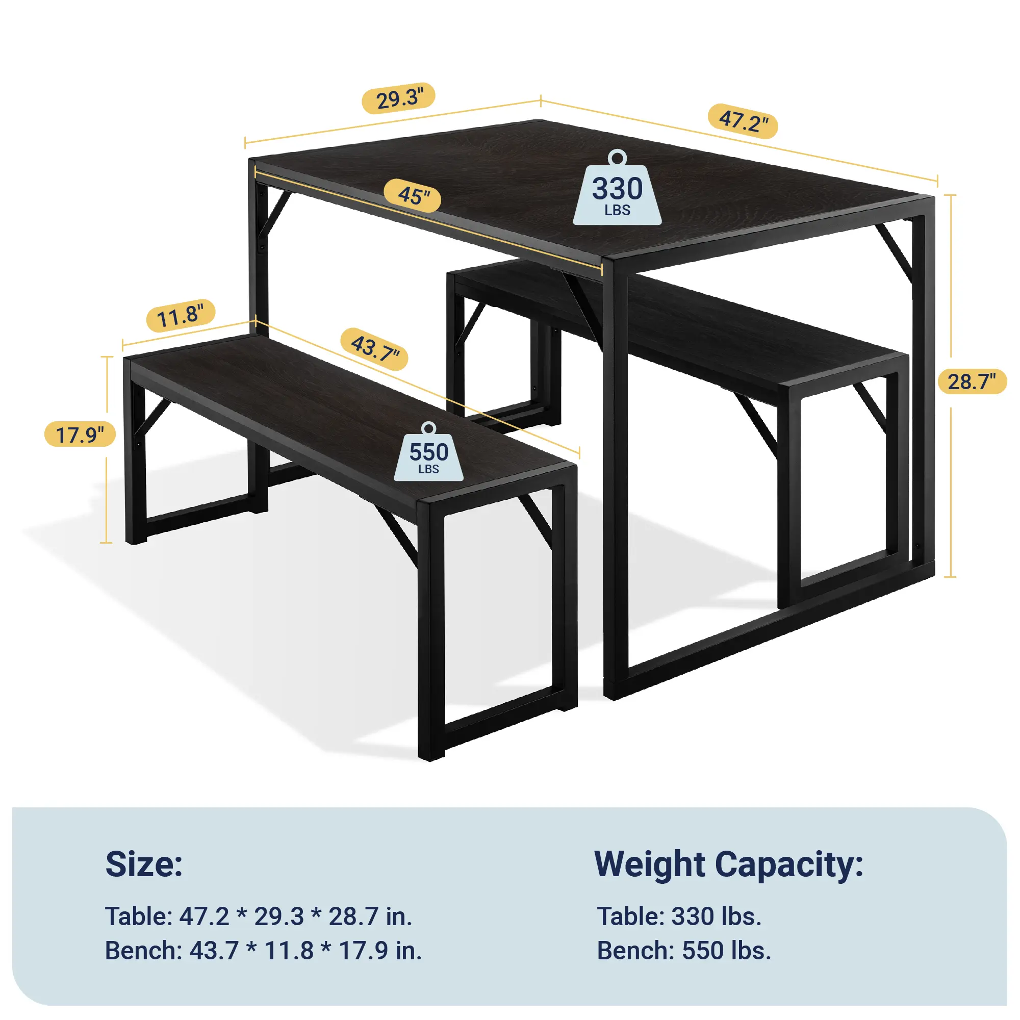 Allewie 3-Piece Dining Table Sets with Benches, Heavy Duty Metal Space-Saving Dinette for Kitchen/Living Room/Studio#TikTokShopBlackFriday #Christmas Gifts