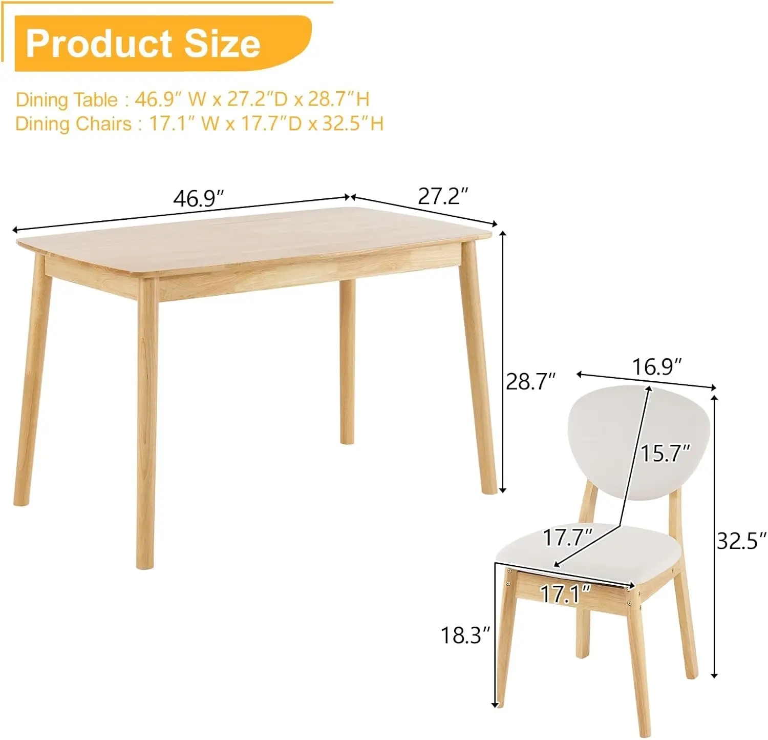 ·【Product Size】Rectangular dining table size: 46.9"L x 27.2"W x 28.7"H, 250 lbs weight capacity. Upholstered chair: 17.7"L x 17.1"W x 32.5"H, 300 lbs weight capacity. Easily meets your lifestyle use