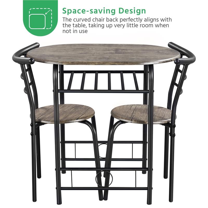 2. Designed for Small Spaces: Measuring 31.5’’ L x 21’’ W, the oval tabletop is large enough for 1-2 people to dine, read or have a close chat cozily. The chairs flawlessly fit the curving edges of the table, allowing you to entirely tuck them away when not in use to free up extra space for you. The space-saving design makes this set the ideal accent for compact spaces