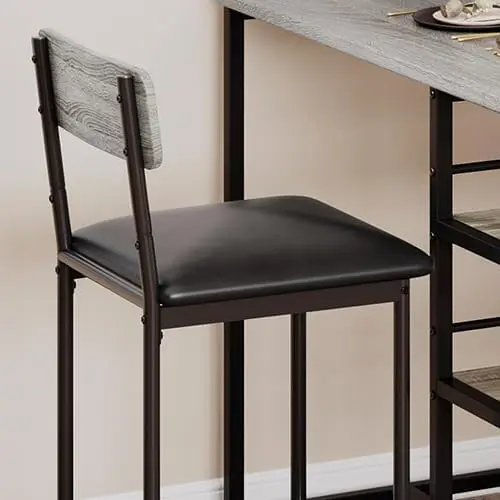 ·DURABLE CONSTRUCTION WITH 3 STORAGE SHELVES: This high kitchen table set with a metal frame, which offers a longer service life and more excellent stability. With the premium MDF Board top, the overall durability would be significantly increased. 3 large storage shelves are perfect for placing tableware, cups, snacks, and wine, providing you with more comfort and convenience.