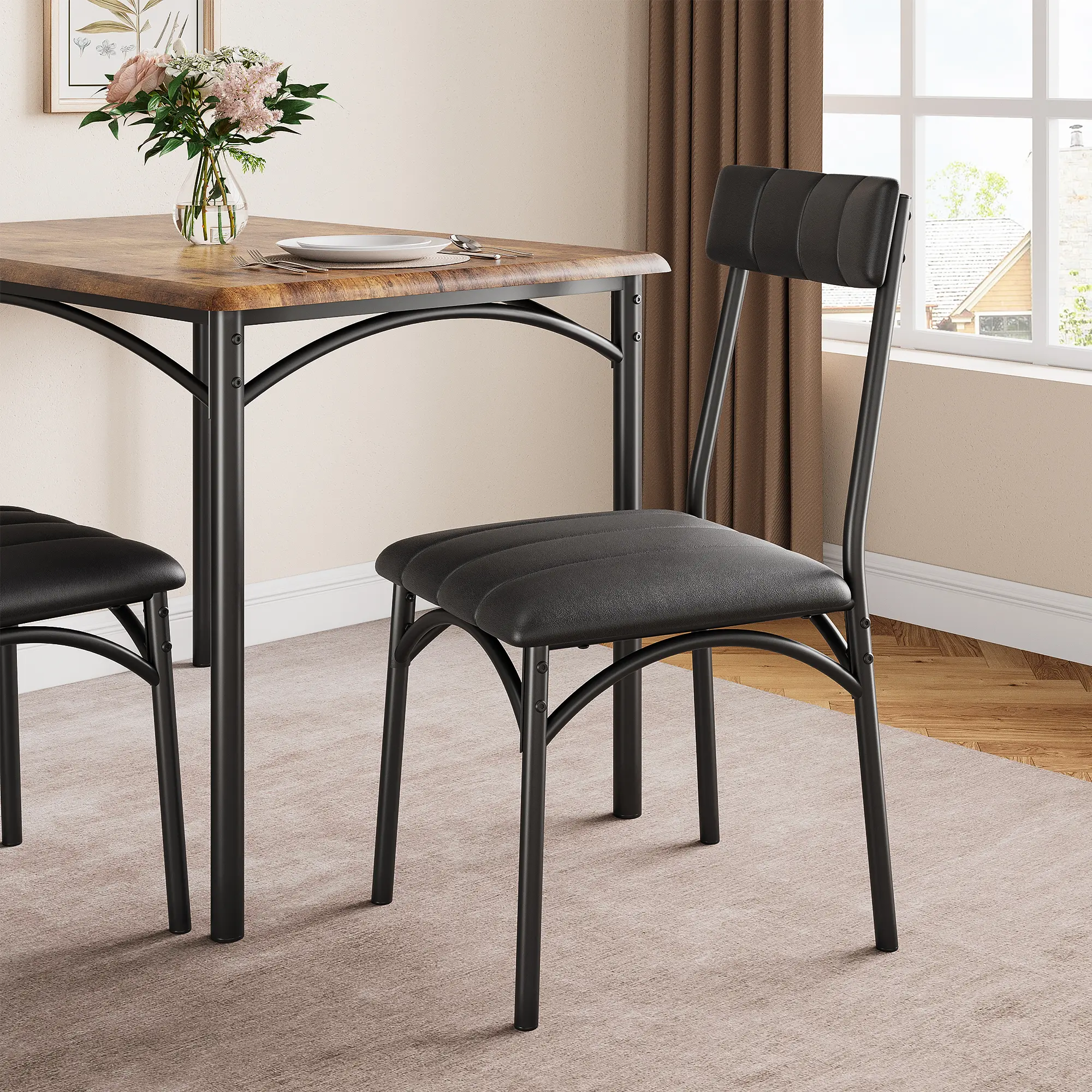 ·Space-Saving Compact Design: 4 kitchen chairs can be hidden under the kitchen table to save space and create a tidy atmosphere. It is an excellent solution for small spaces, such as condos, kitchens, studios, or apartments.