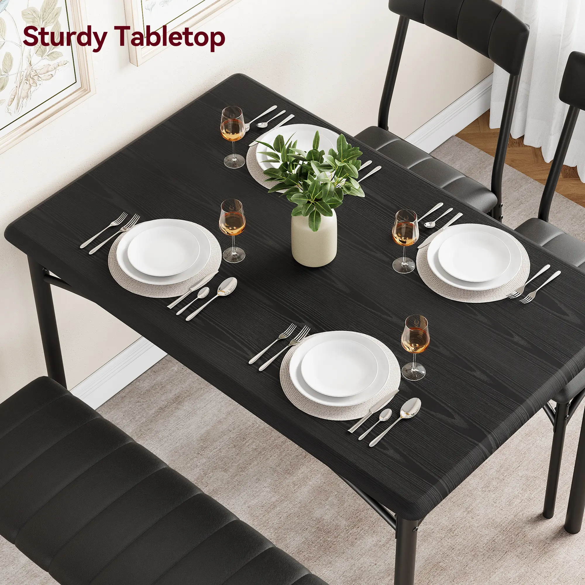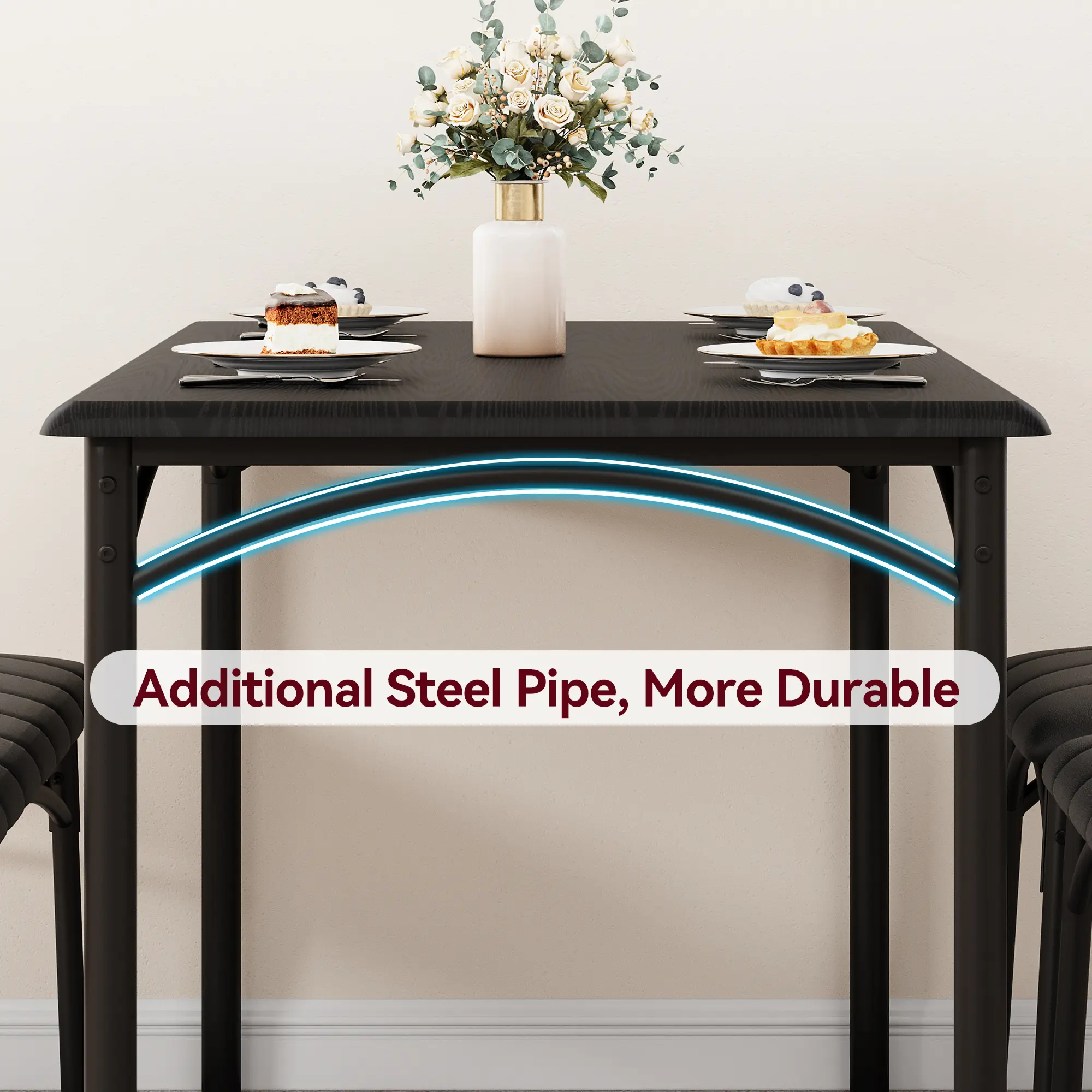 Easy to Maintain: The surface of the dining table set is a waterproof and anti-corrosive coating, You can easily wipe soup, sauce, and dust clean, and the surface will not be hurt, and is sturdy for long-term use.