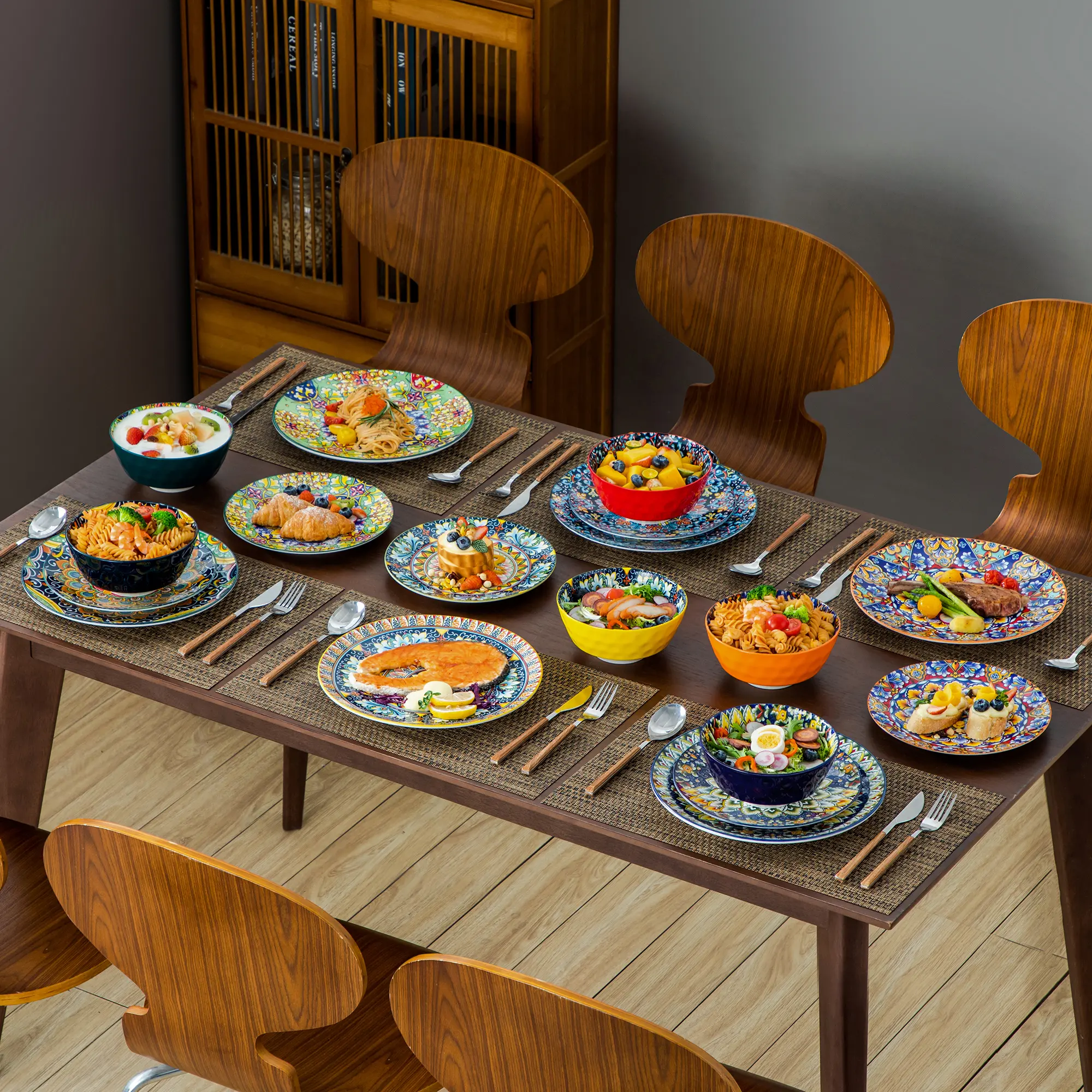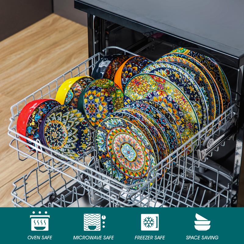 vancasso simi plates and bowls set is creatively crafted from ceramic into unique and contemporary shapes, beautifully colored in stunning colours, delicately patterned with boast enchanting and intricate flora.The lively colors and artistic patterns evoke a sense of joy and positivity, enhancing your dining experience with a burst of energy and happiness.