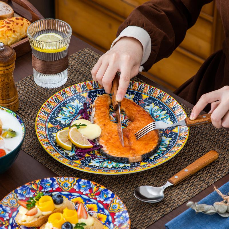 Evenly glazed with glossy finish, they make a beautiful, stylish impression and capture the free-spirited essence of Bohemian. On these plates everything becomes more beautiful and tastier! You can eat in a good mood.